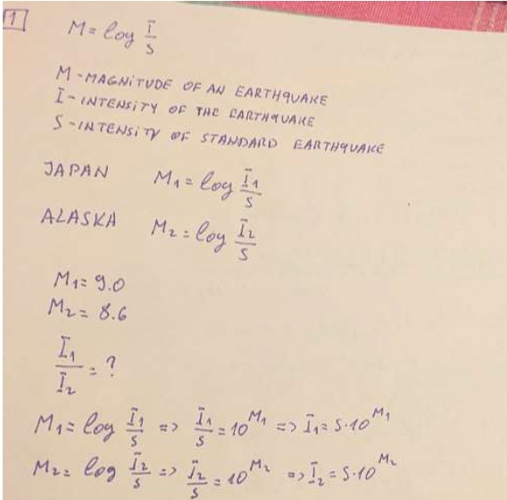 The Richter scale gives the magnitude of an earthquake by the formu...