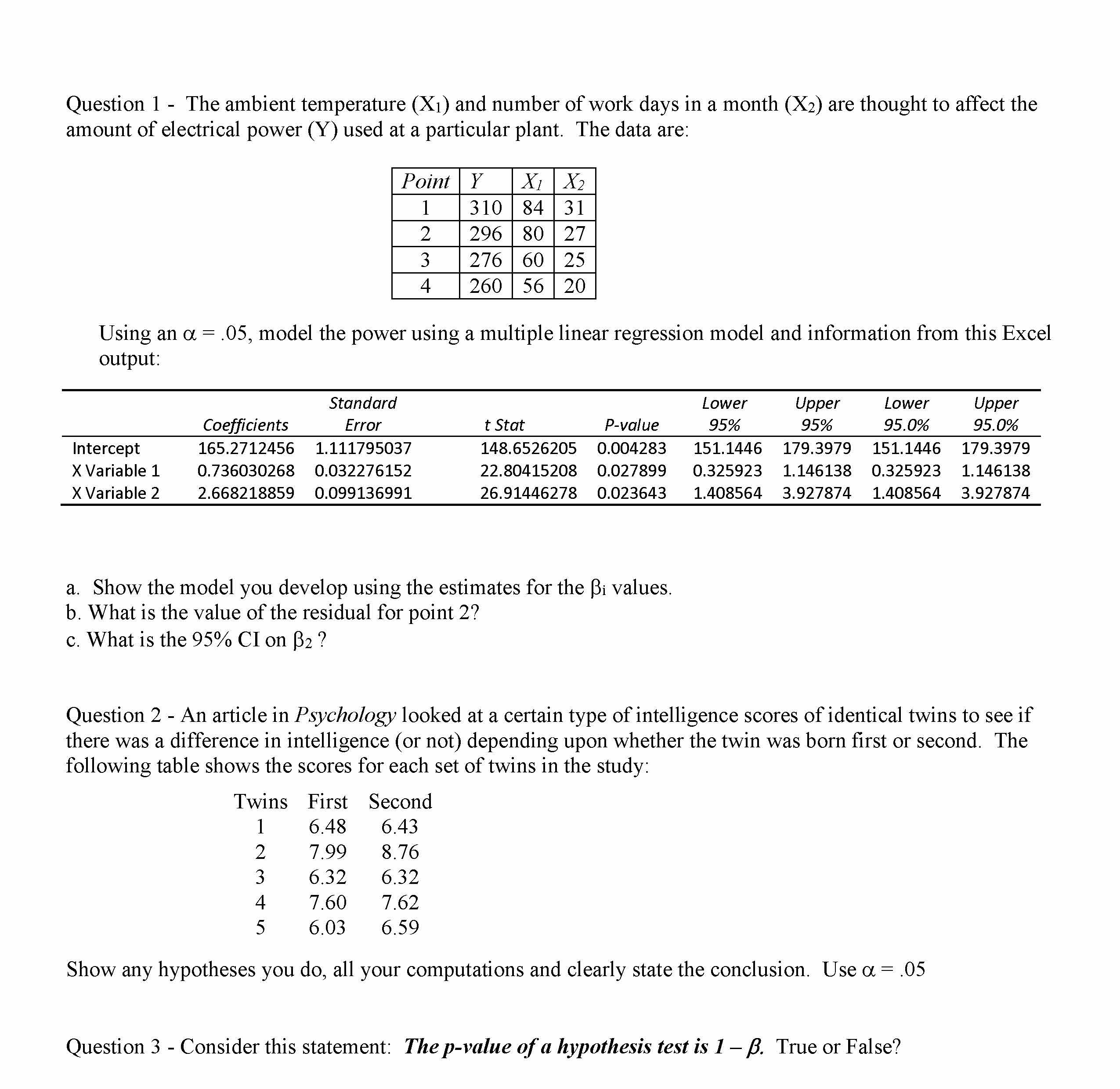 Question 1 - The ambient temperature (X1) and number of work days i...
