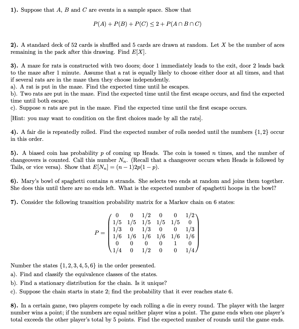 1). Suppose that A, B and C are events in a sample space. Show that...