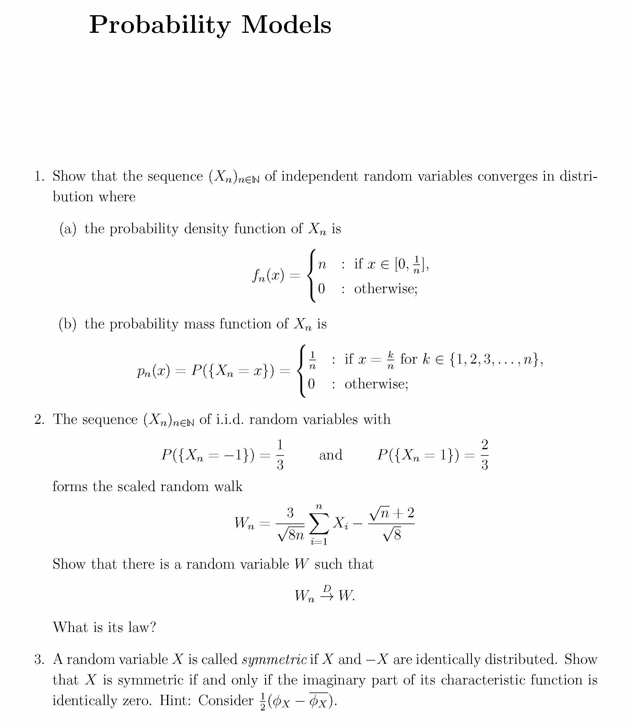 Probability Models 1. Show that the sequence (Xr)new of independen...