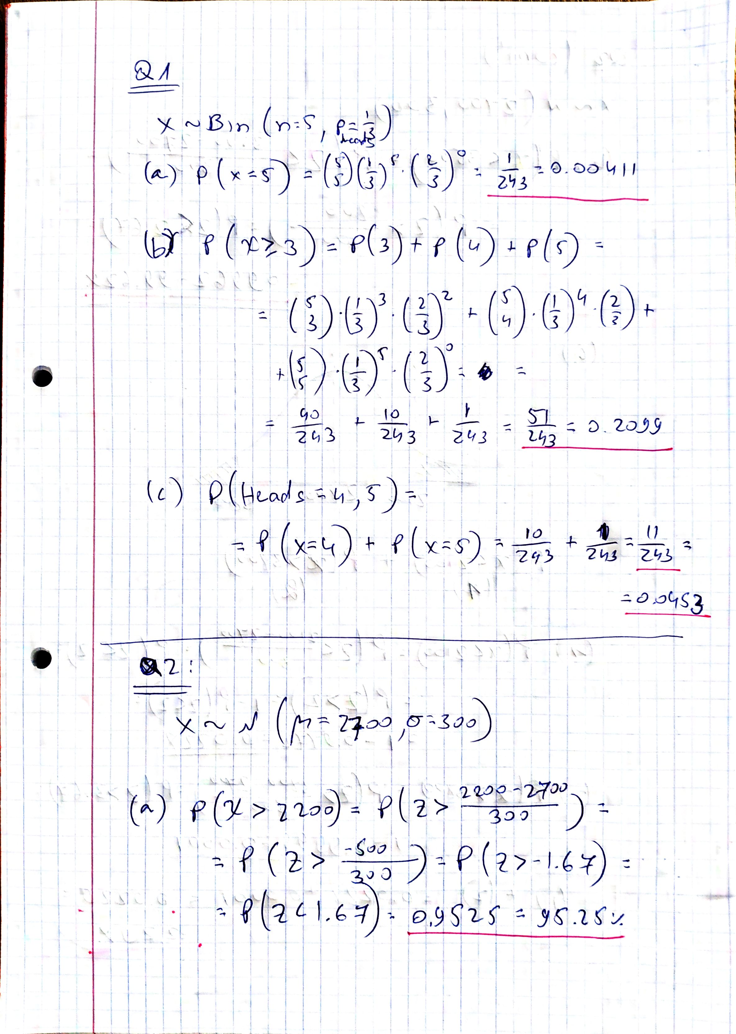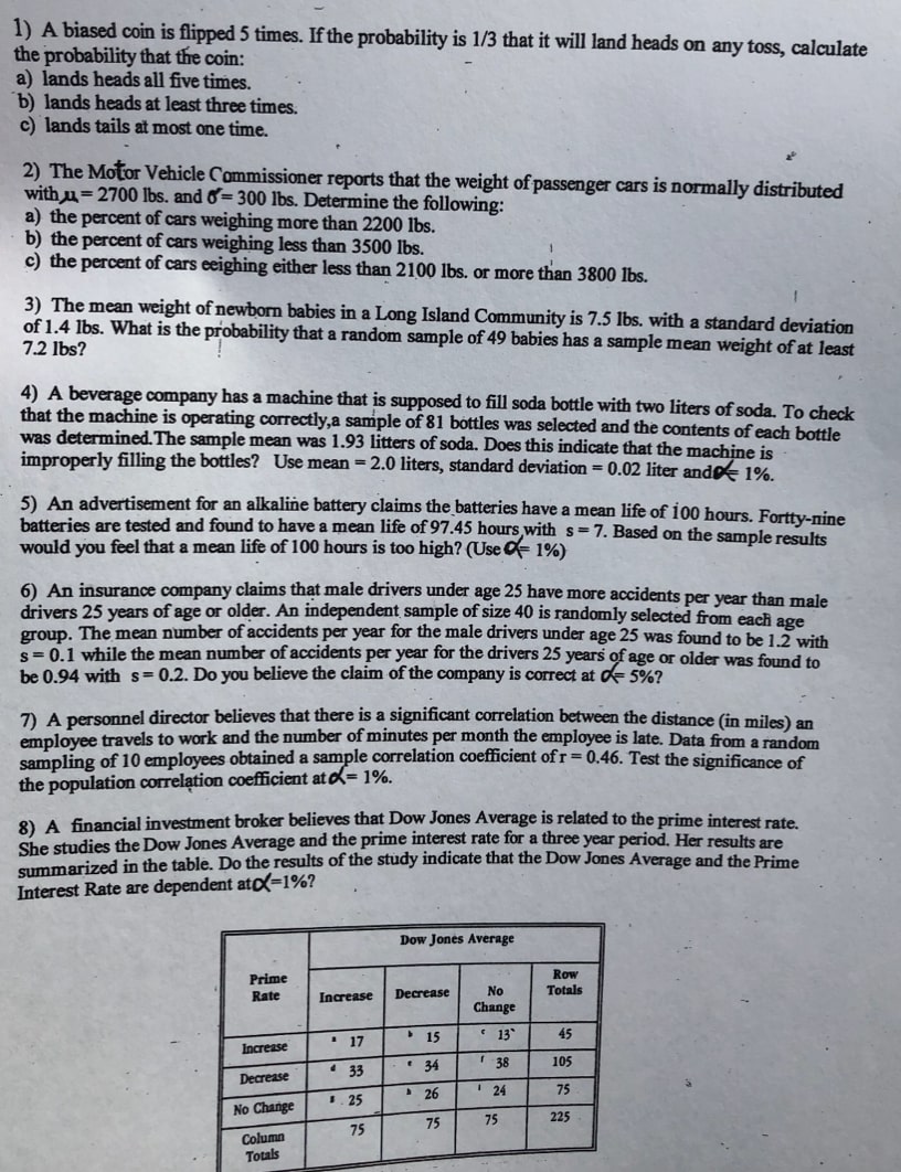 1) A biased coin is flipped 5 times. If the probability is 1/3 that...