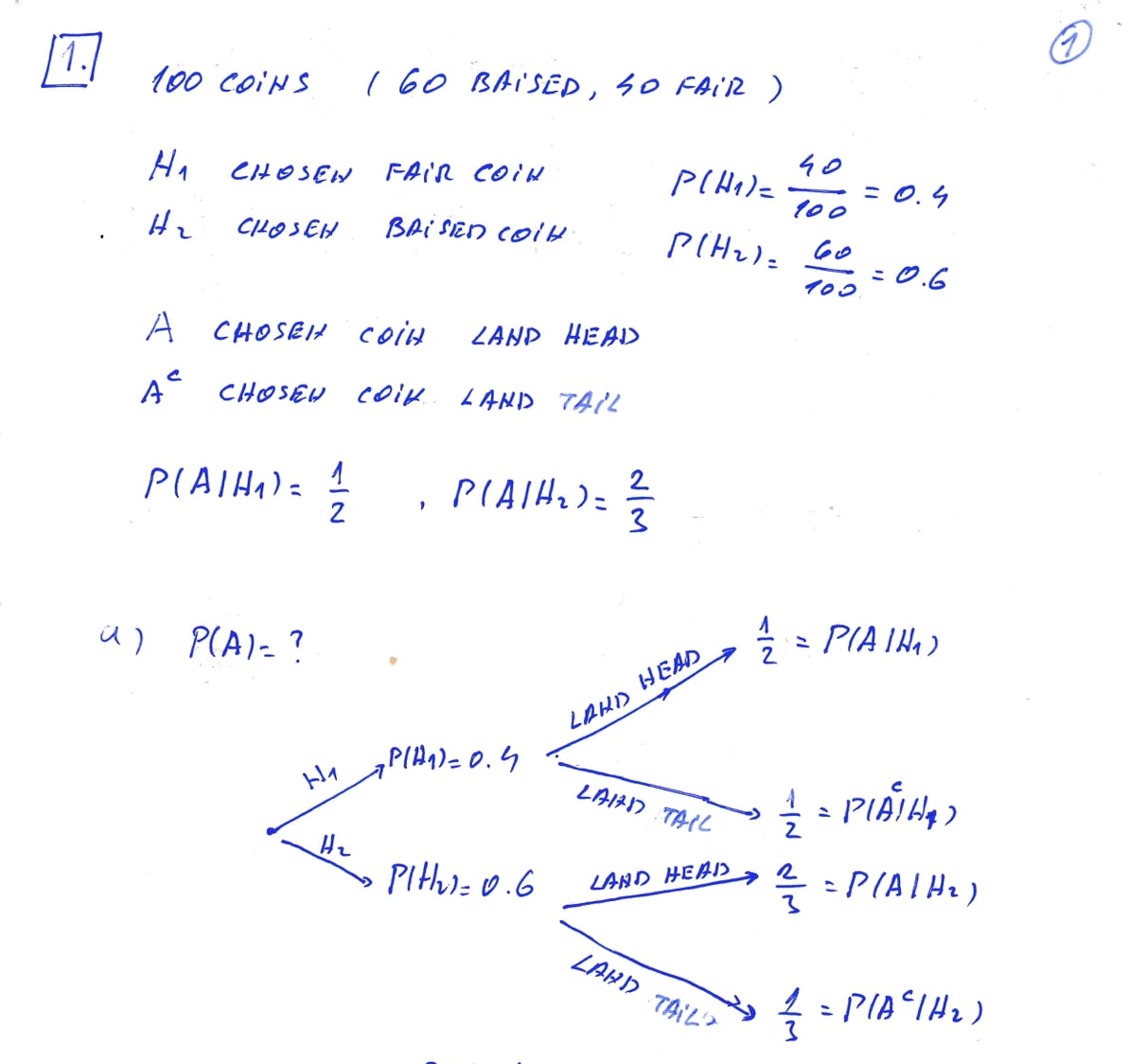 Problem 1. The are 100 coins, 40 of them fair and 60 of the biased....
