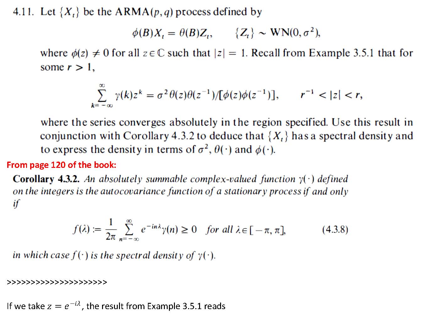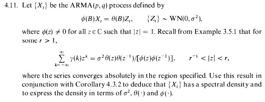 4.11. Let {X,} be the ARMA(p,q) process defined by d(B)X,=A(B)Z, =...