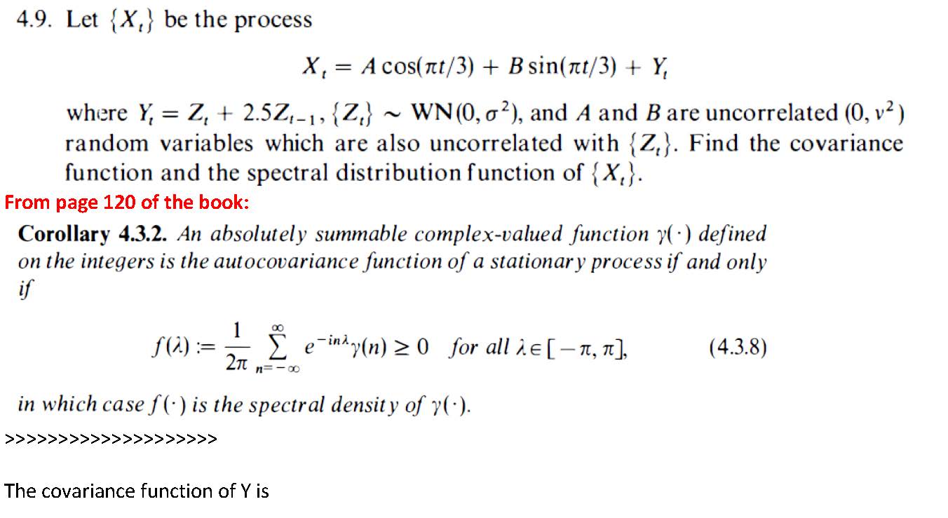 4.9. Let (X,} be the process X, = A cos(t/3) + B sin(zt/3) + Y, w...