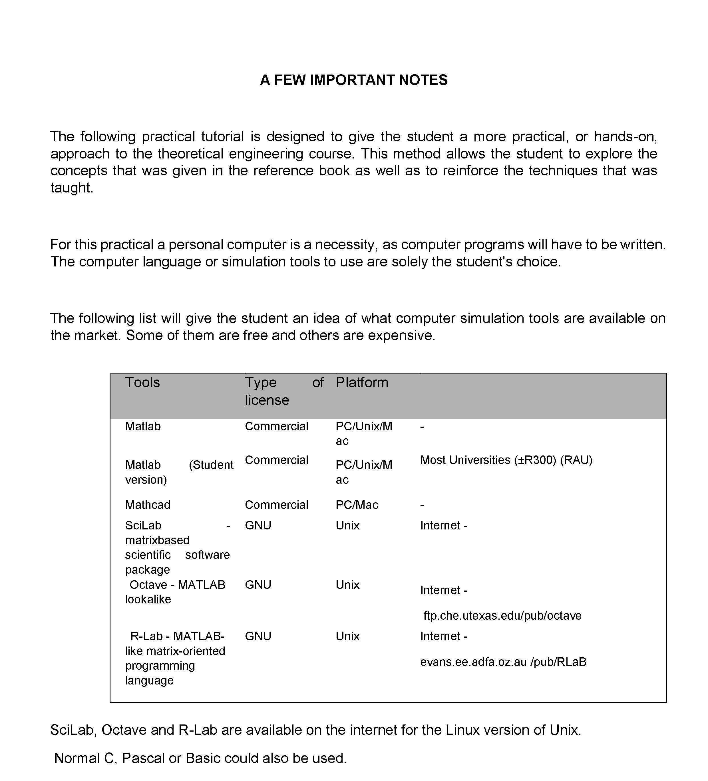 A FEW IMPORTANT NOTES The following practical tutorial is designed...