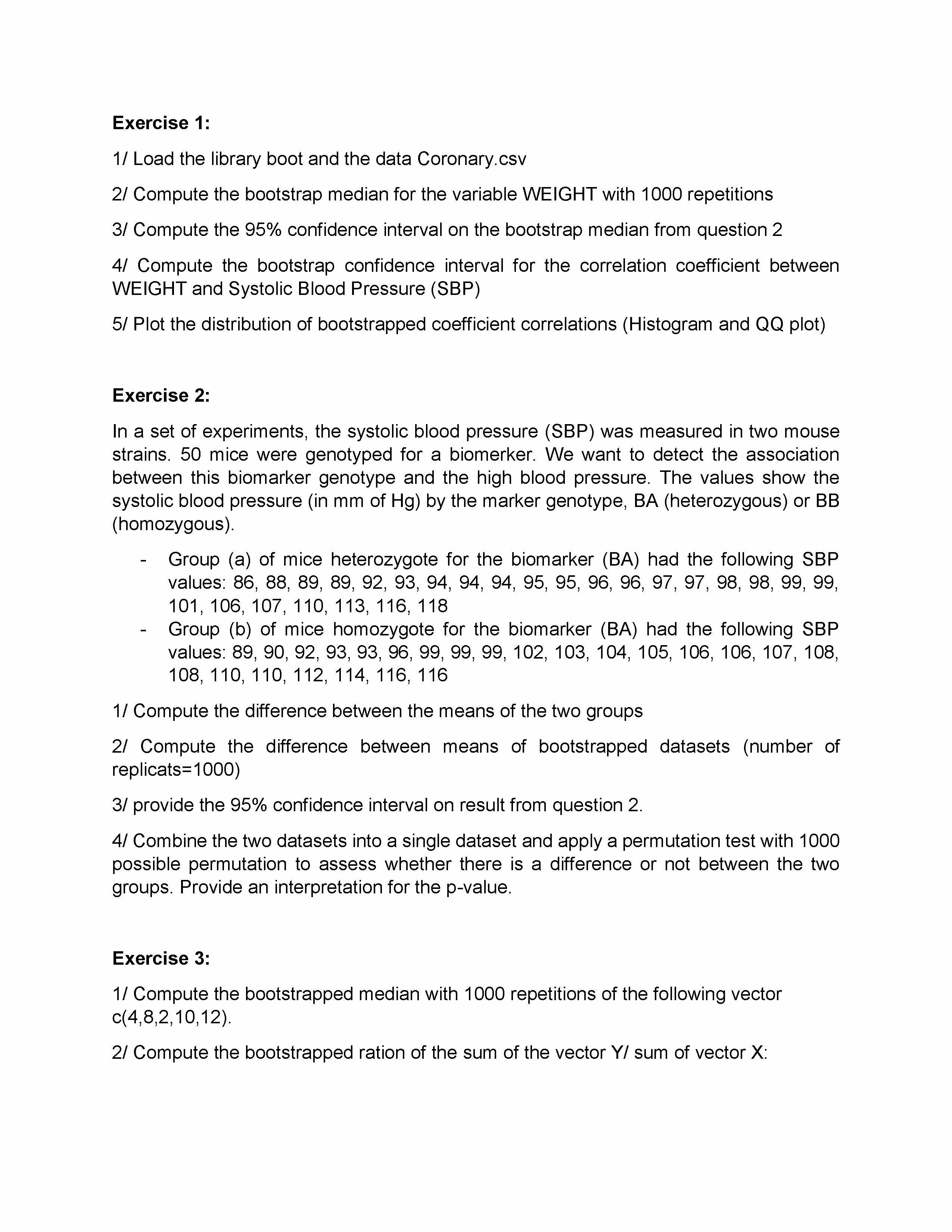 Exercise 1: 1/ Load the library boot and the data Coronary.csv 2/...