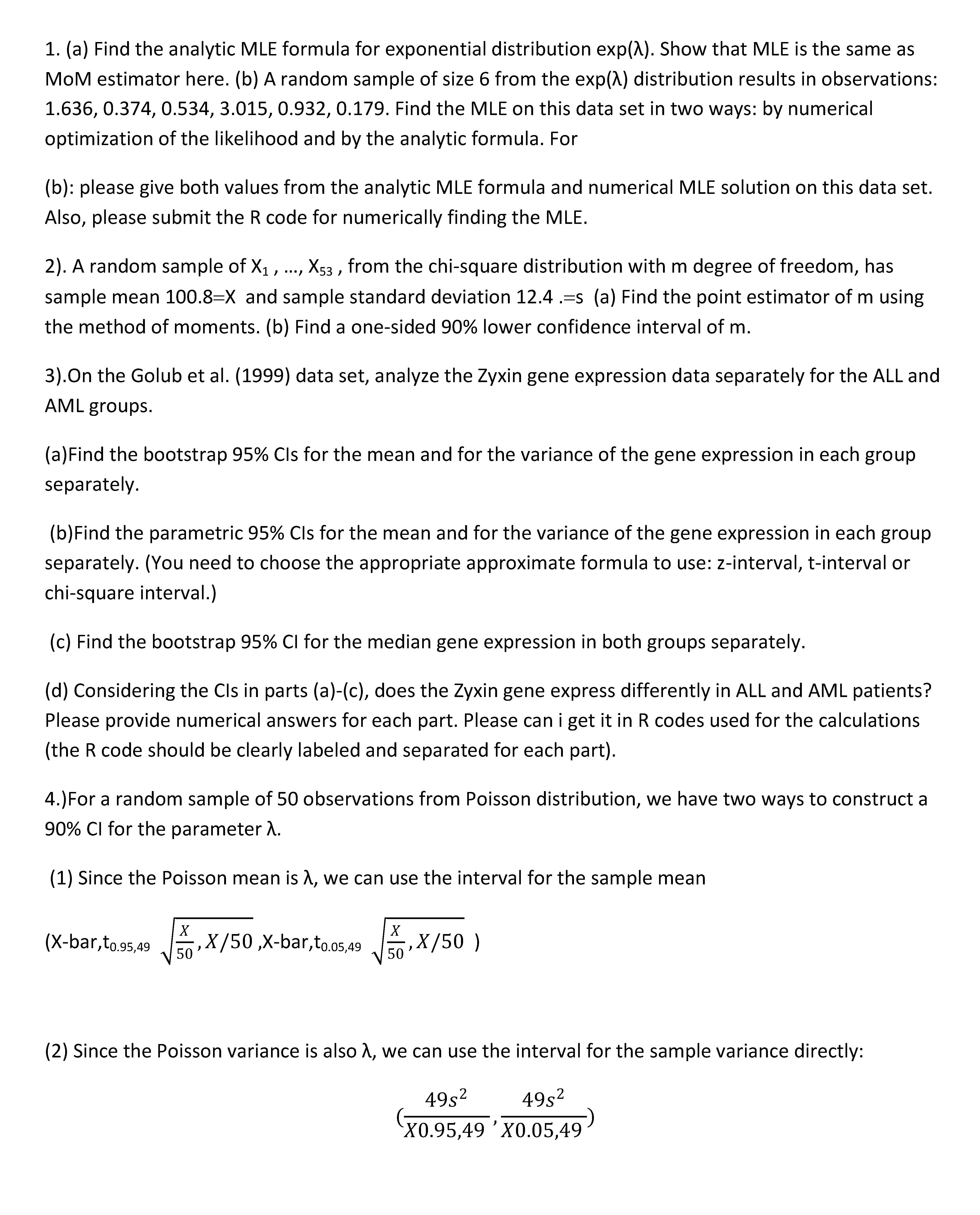 1. (a) Find the analytic MLE formula for exponential distribution e...