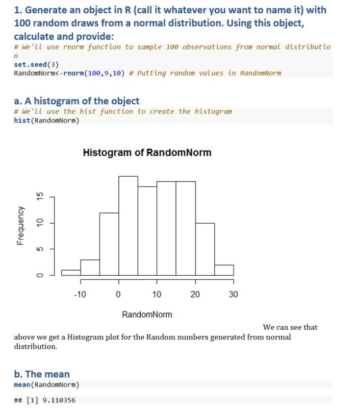 PROVIDE ALL CODE WITH ANSWERS/PLOTS 1. Generate an object in R (...
