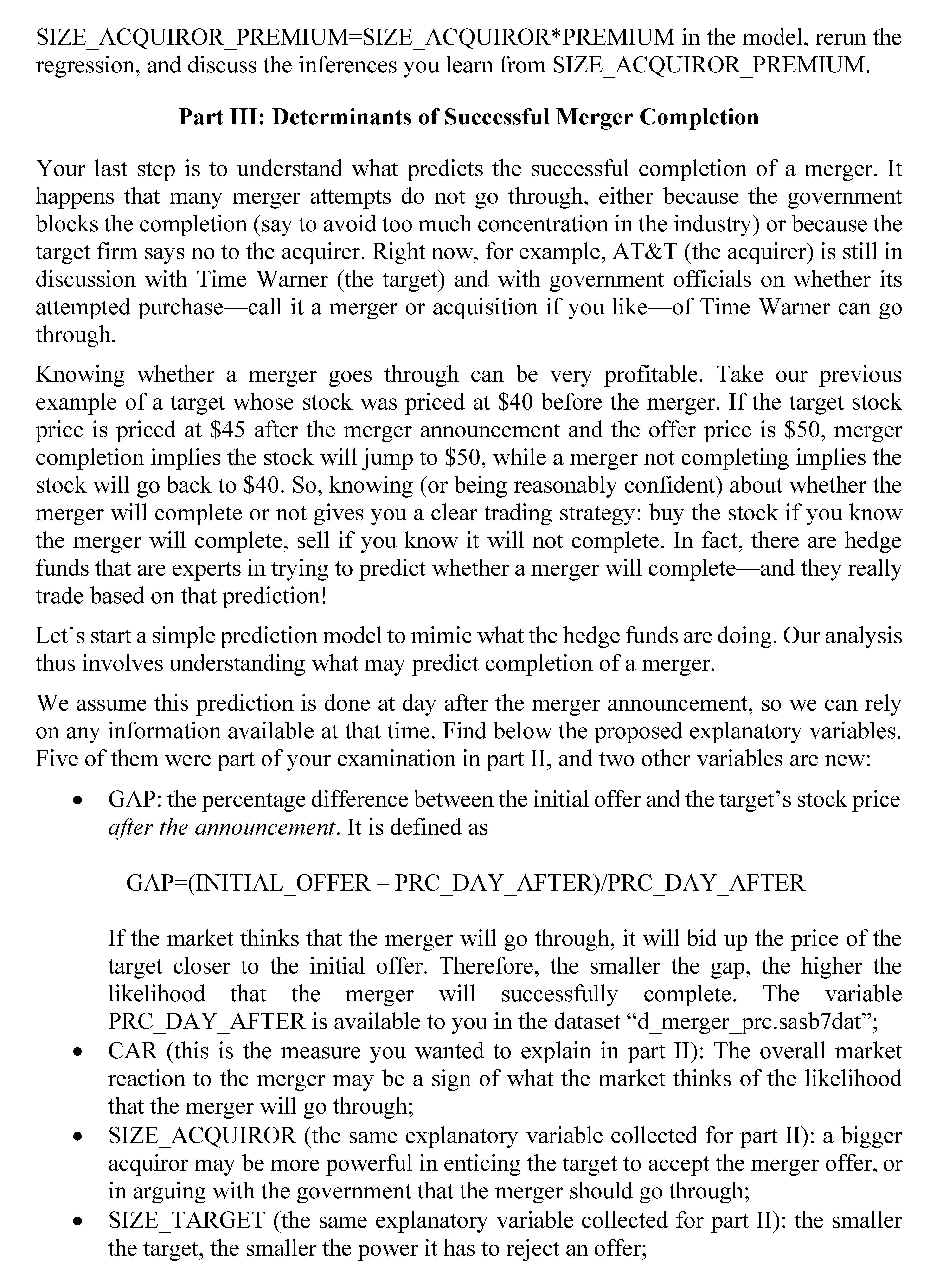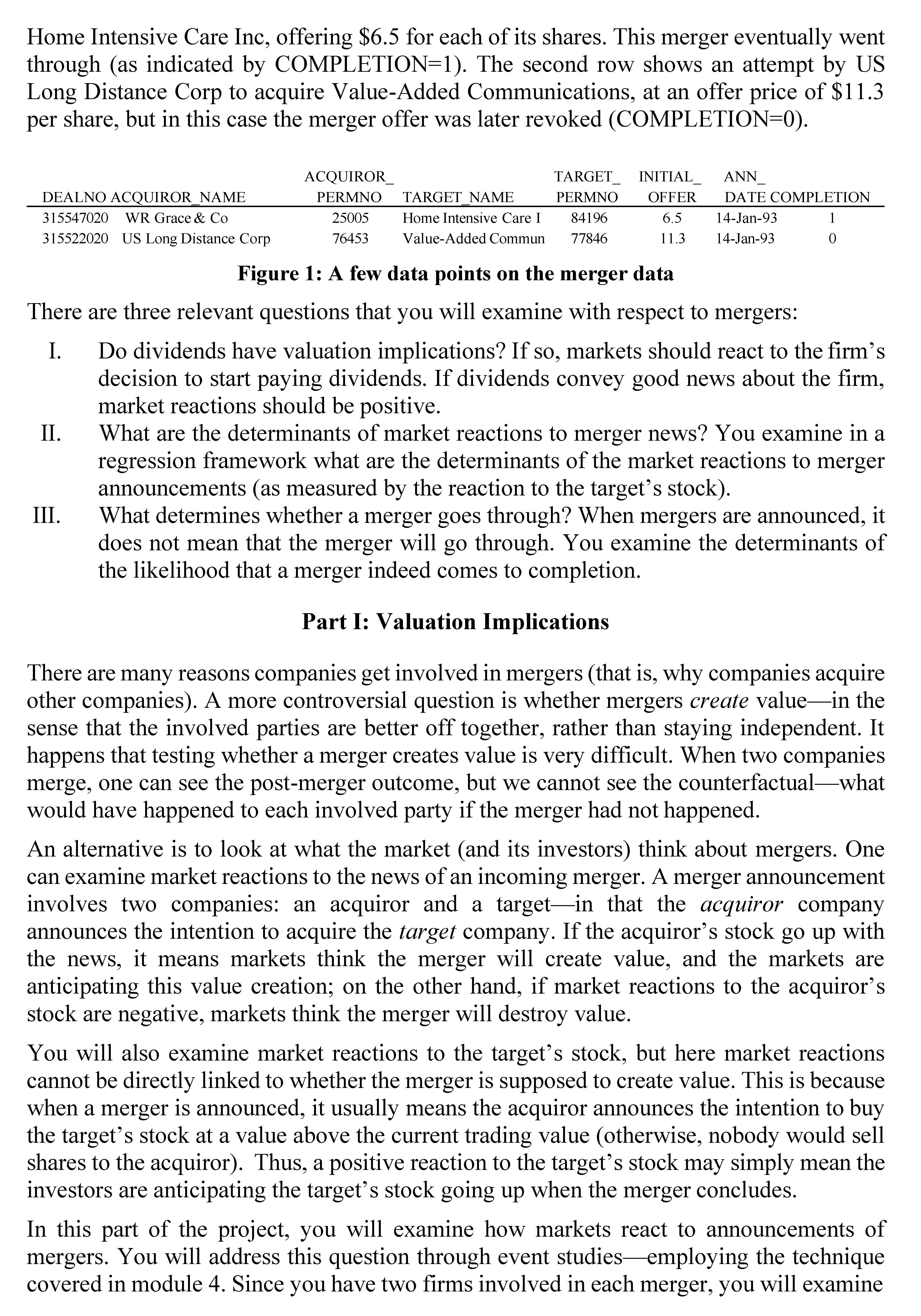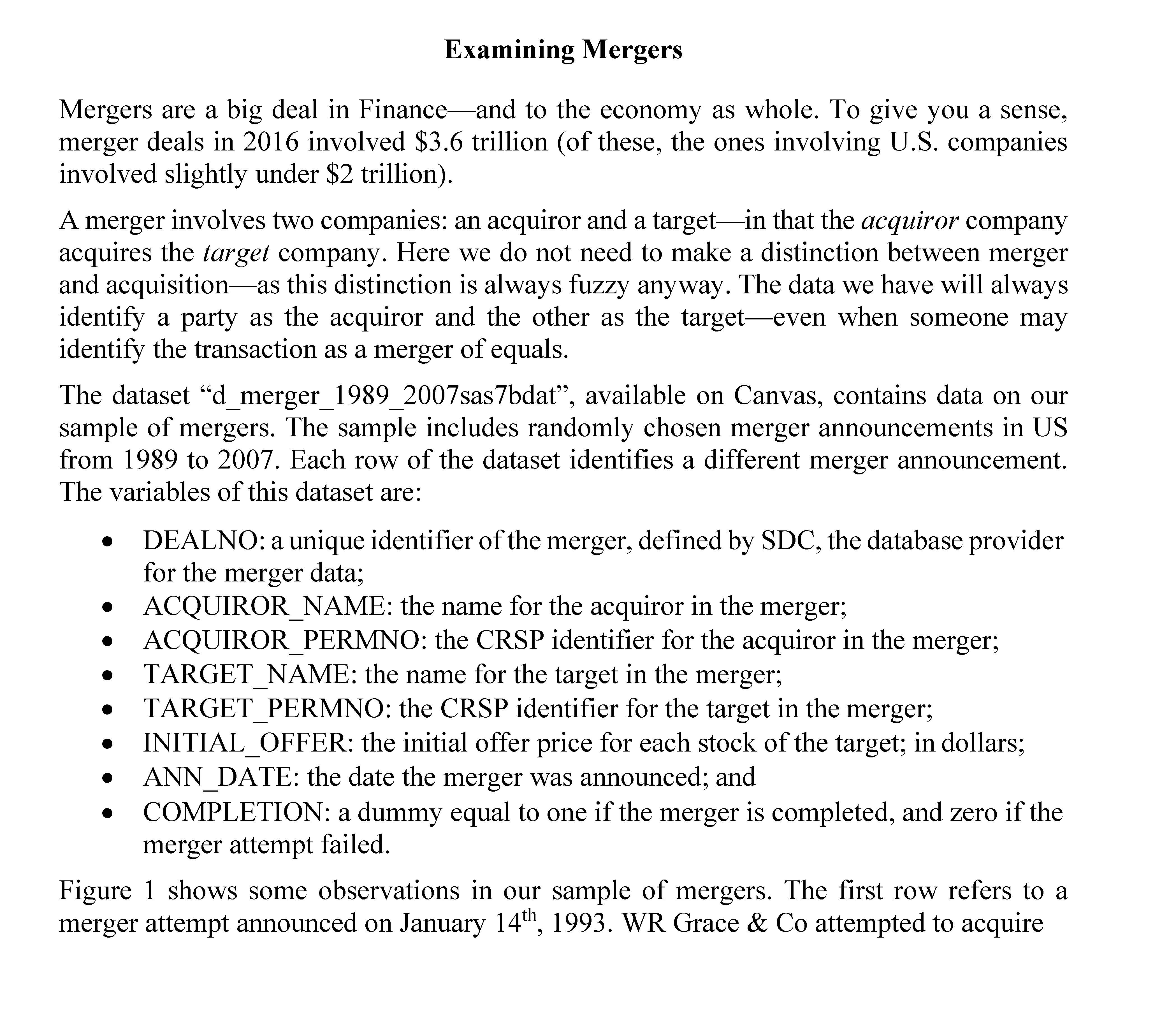 Examining Mergers Mergers are a big deal in Finance—and to the e...