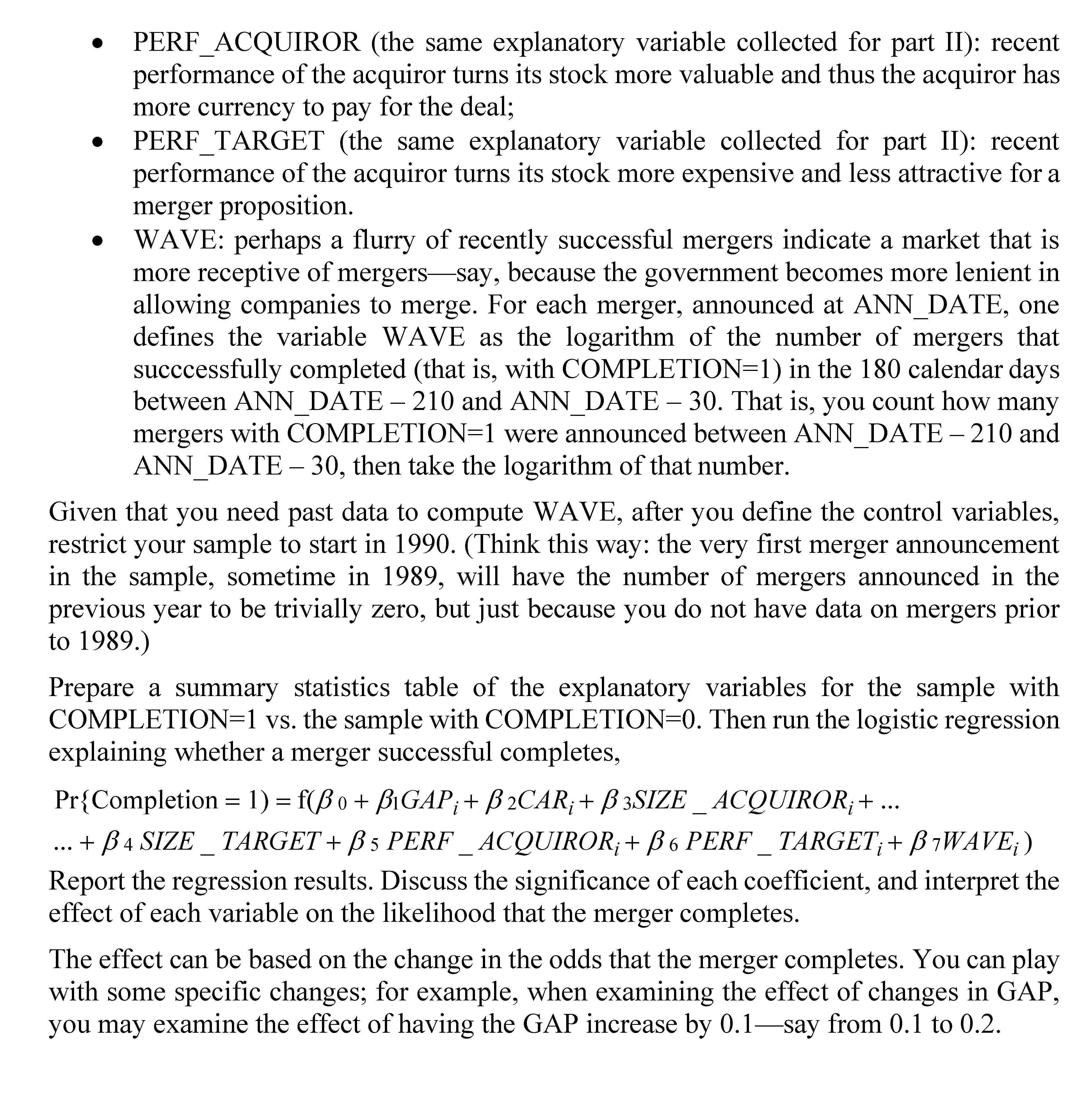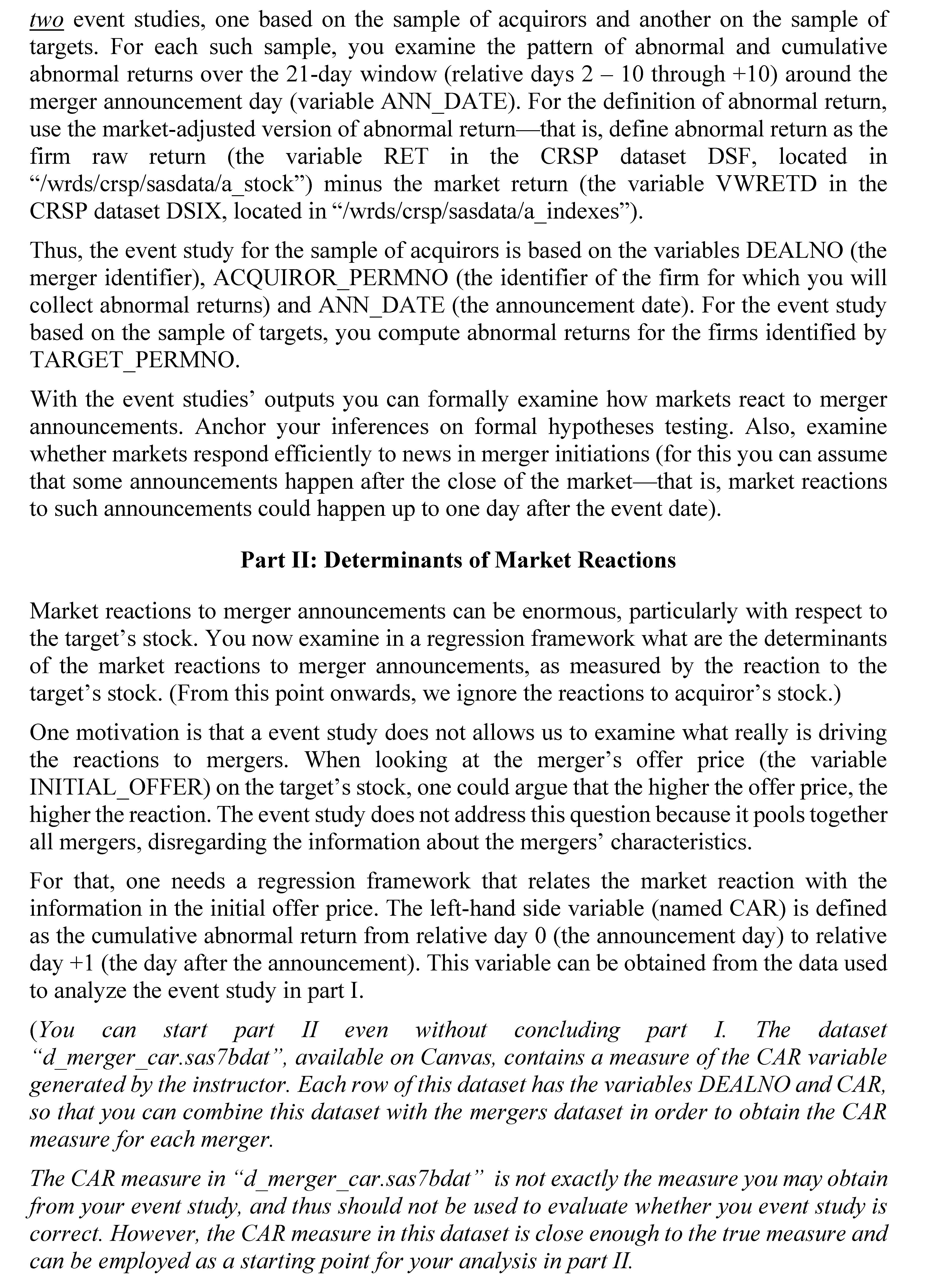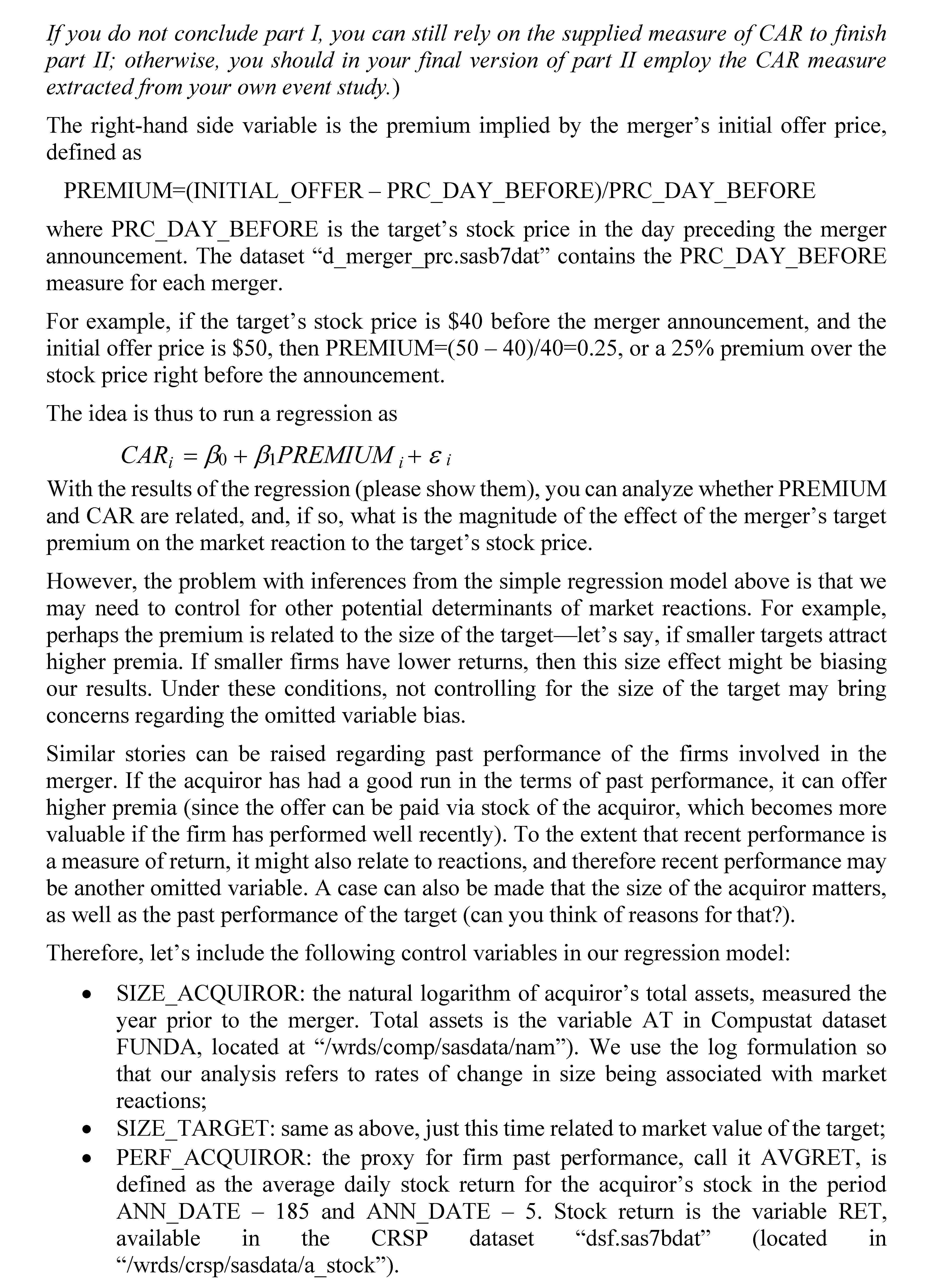 Examining Mergers Mergers are a big deal in Finance—and to the e...