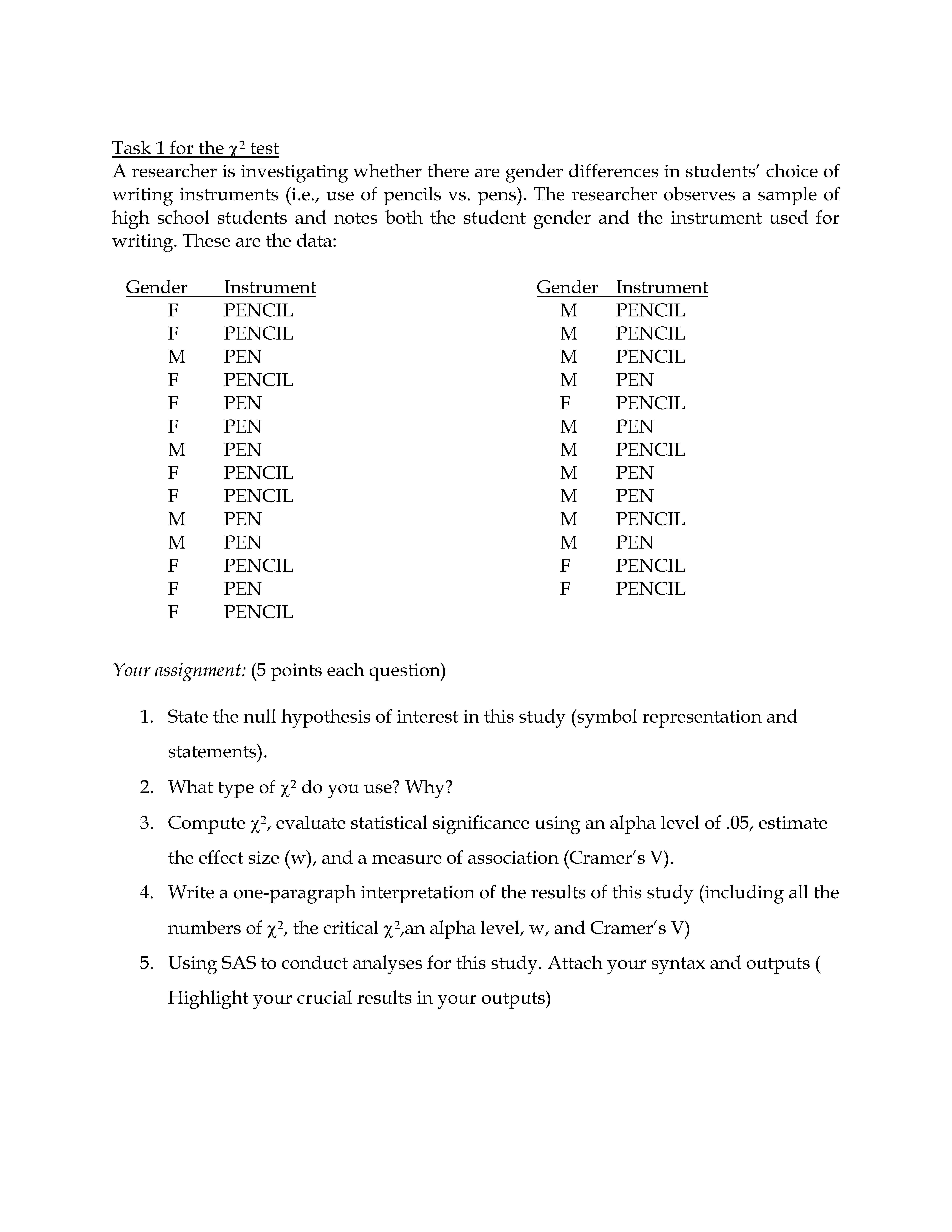 Task 1 for the ï£2 test A researcher is investigating whether...