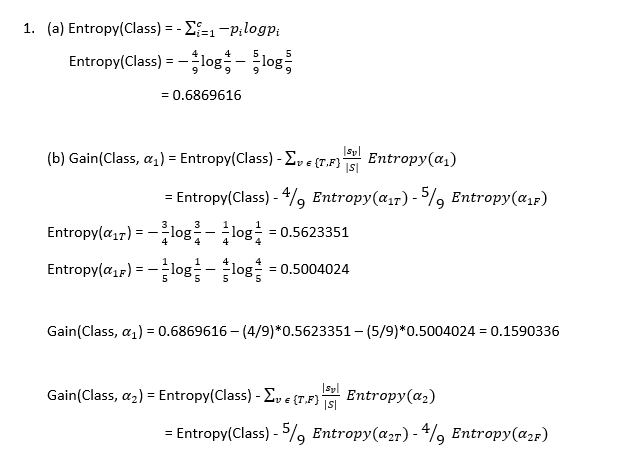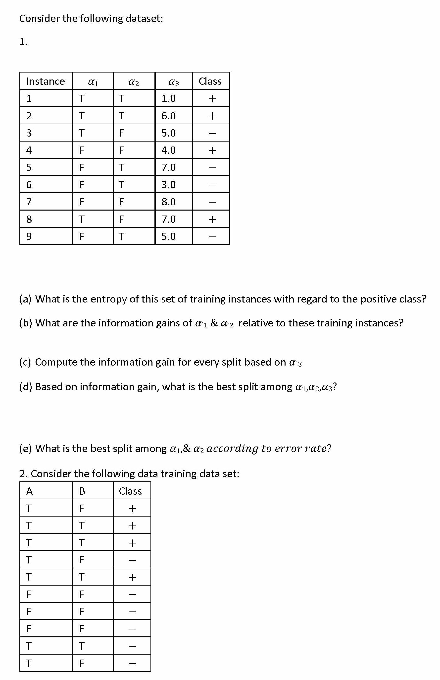 Consider the following dataset: 1. Instance ð›¼1 ð›¼2 ð›¼3 Cla...