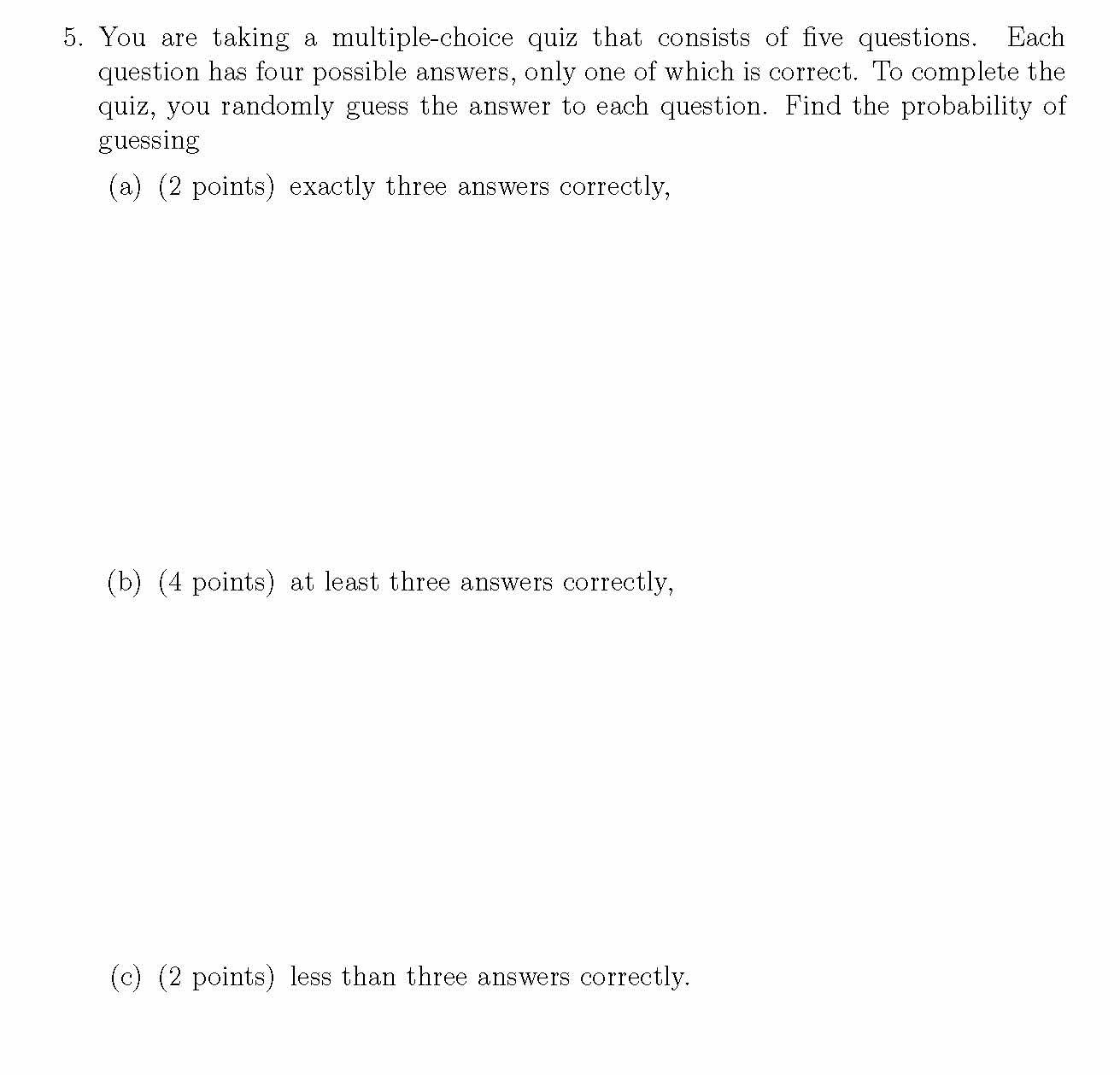 1. (a) (2 points) A 20-sided die is rolled. Find the probability ...