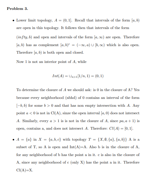 3/ Determine Int(A) and CL (A) in each case: A=├]0,1] in the low...