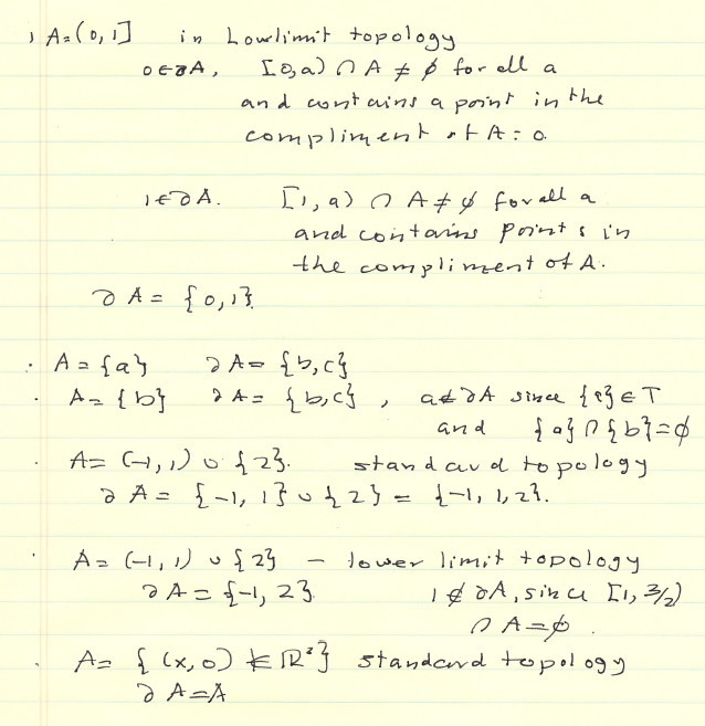 Q1/Determine ∂A in each case A=(0,1]in the lower limit topology...