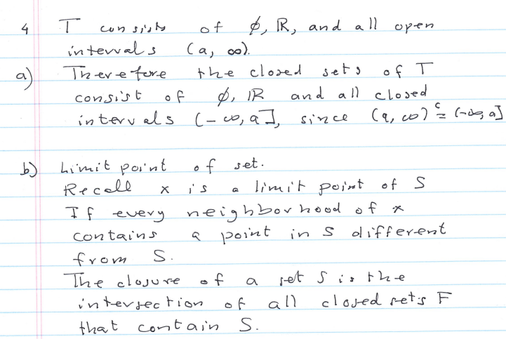 (4) For this problem only the topology T on R will consist of φ,...