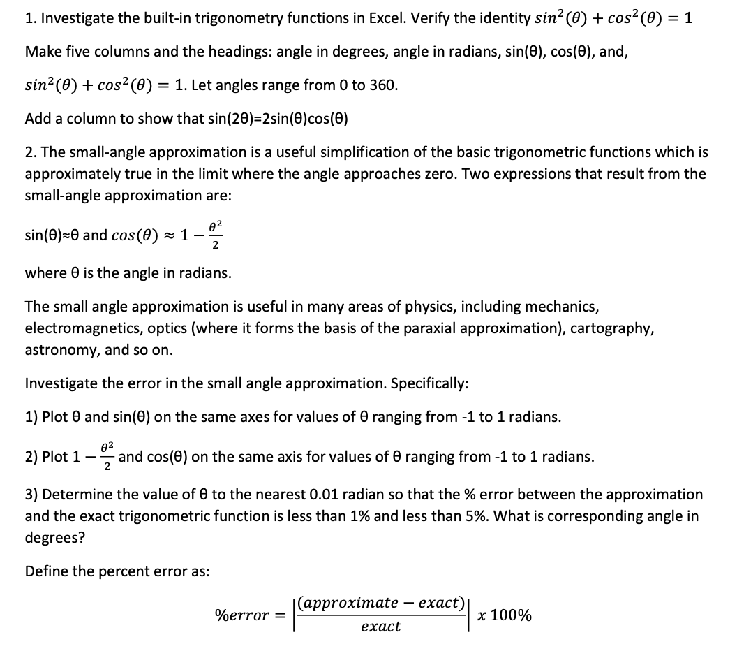 1. Investigate the built-in trigonometry functions in Excel. Verify...