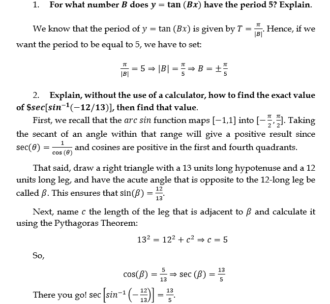 1.For what number B does y = tan(Bx) have the period 5. Explain. 2...