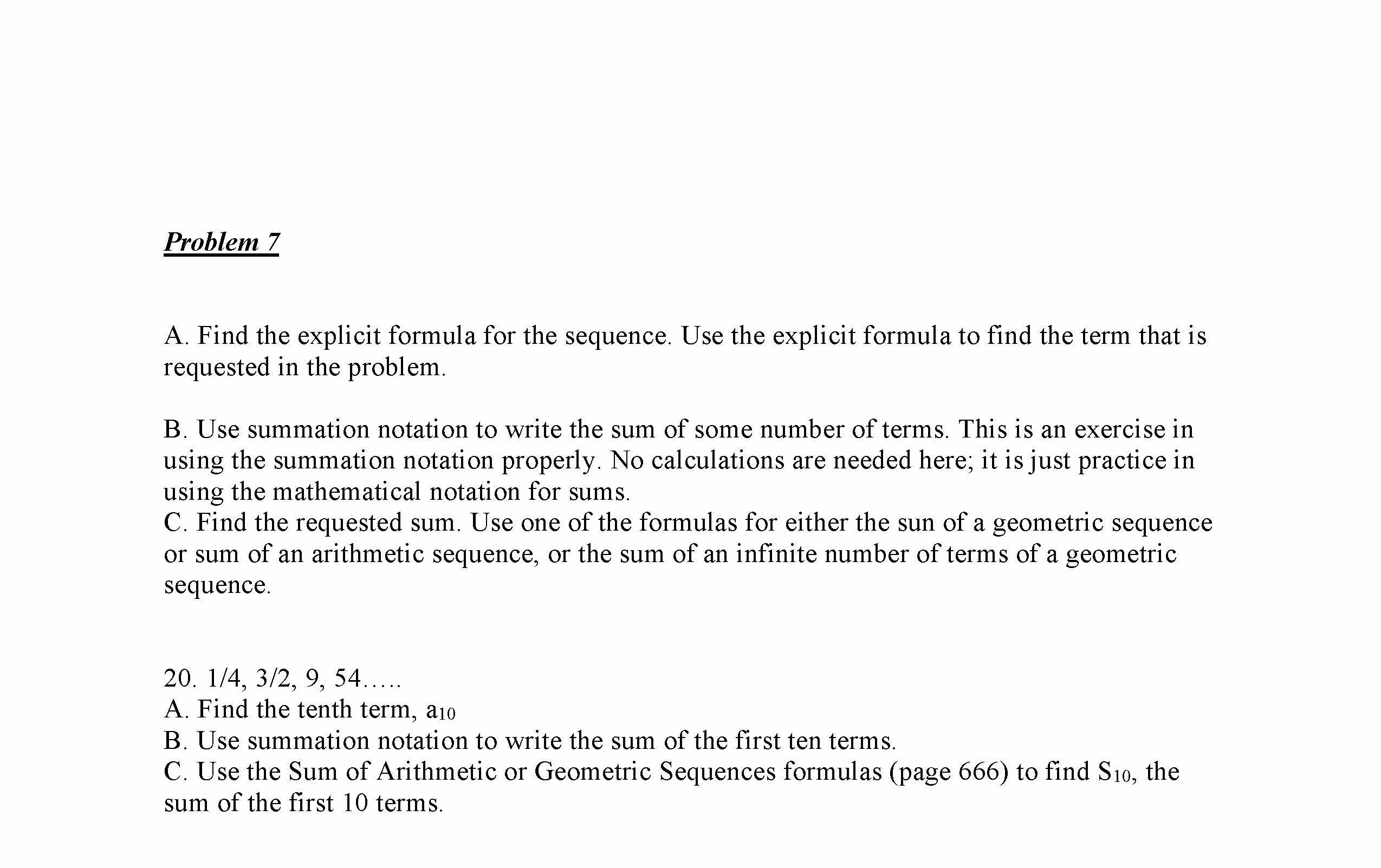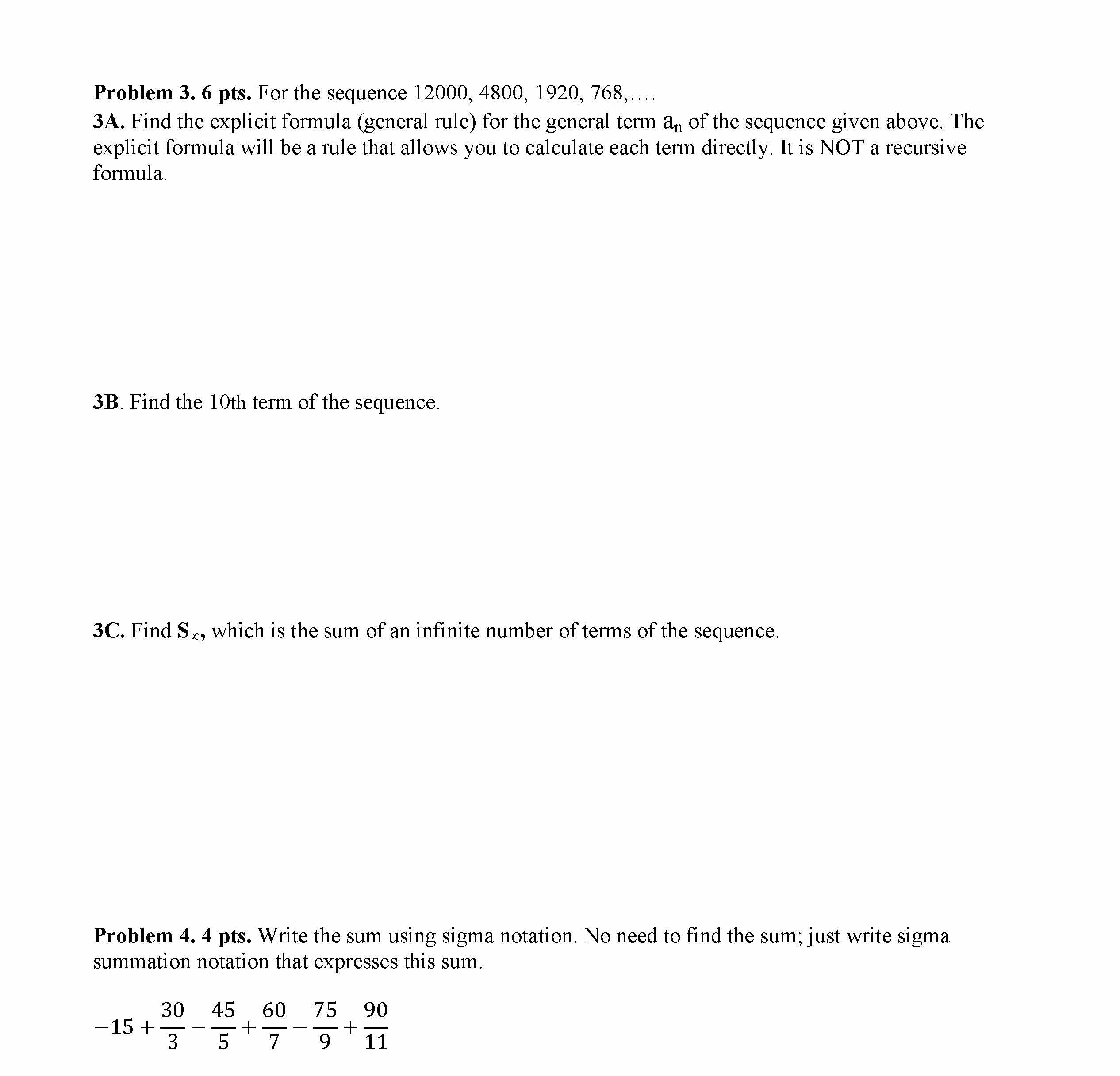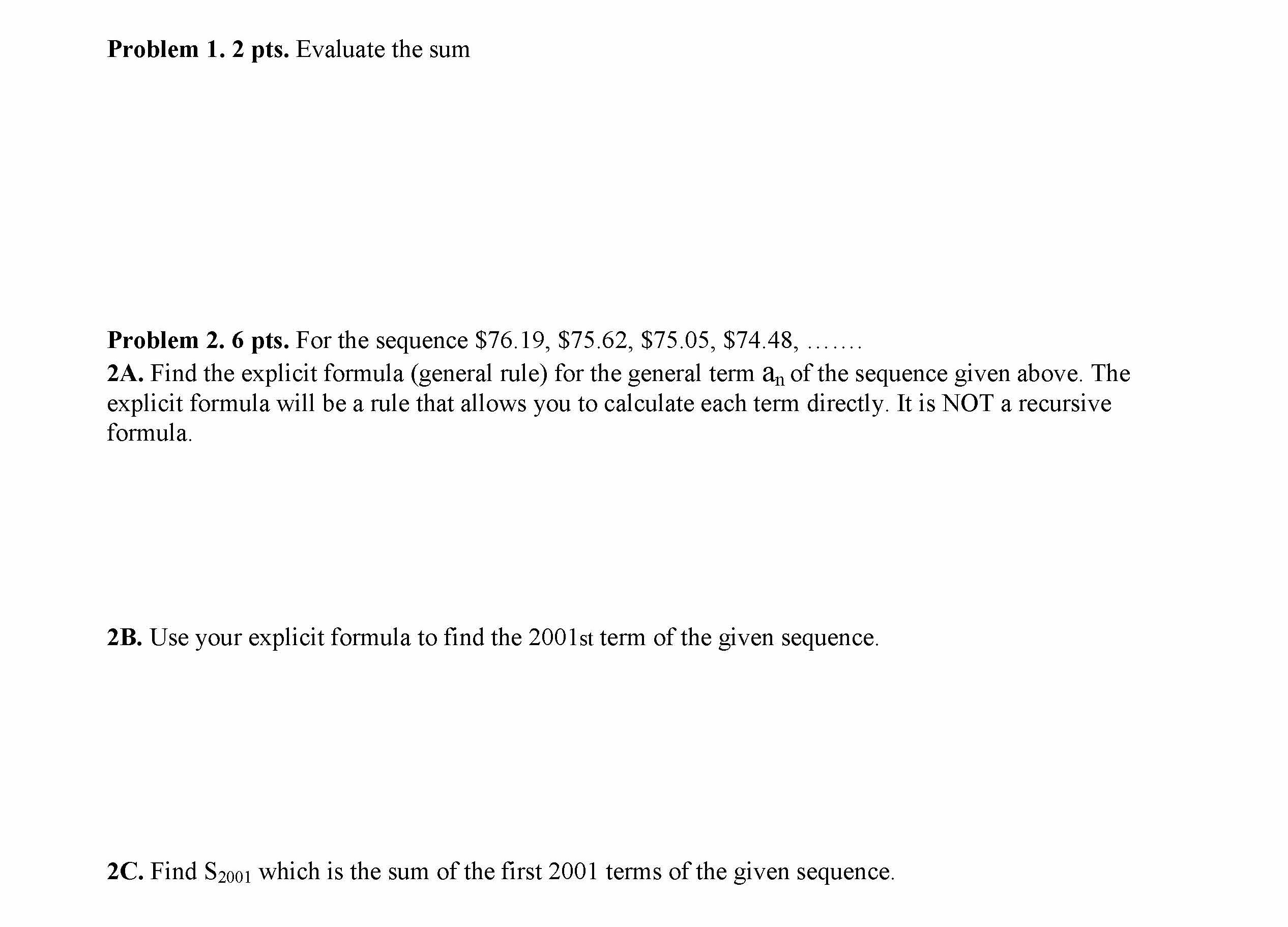 Problem 1. 2 pts. Evaluate the sum Problem 2. 6 pts. For the seque...