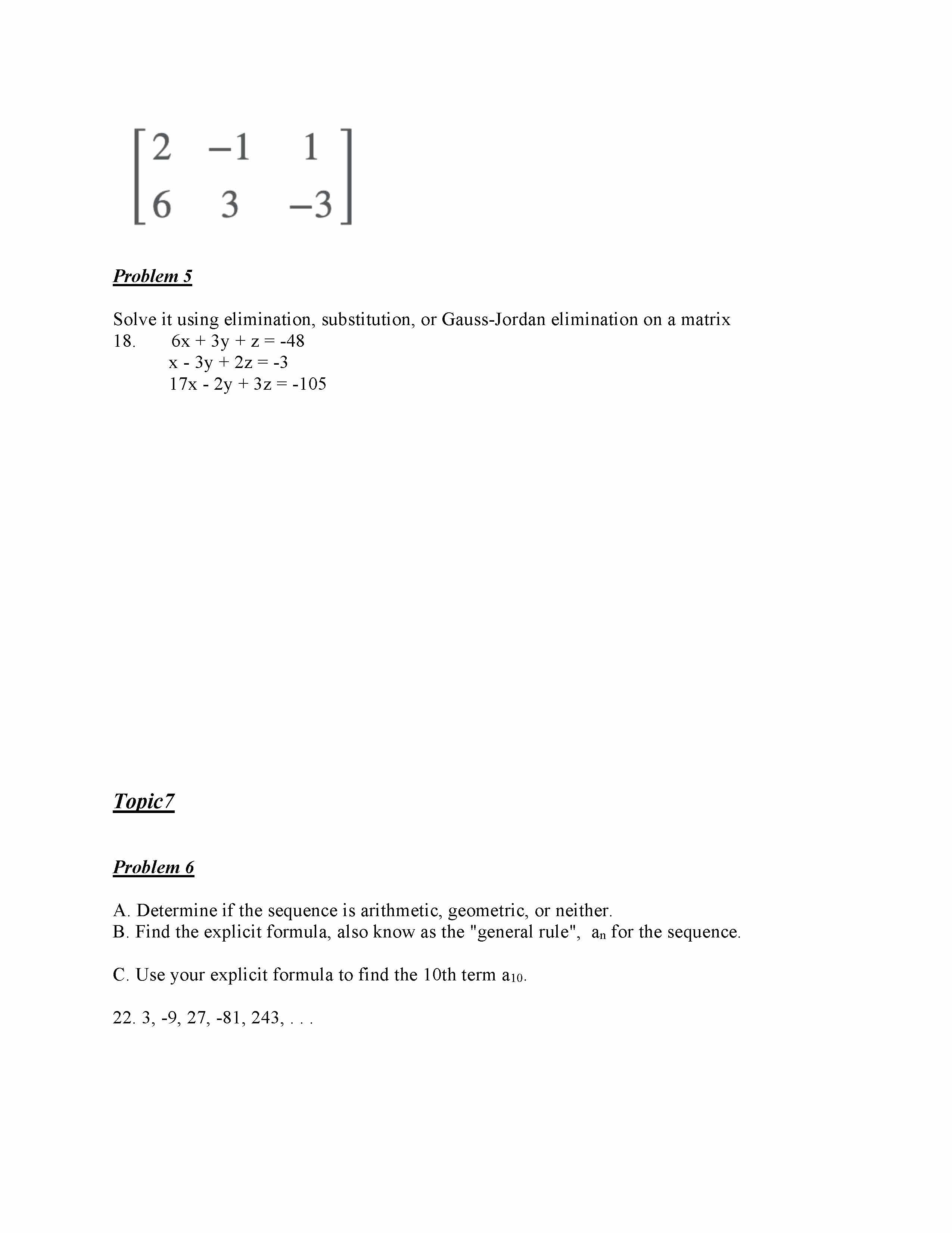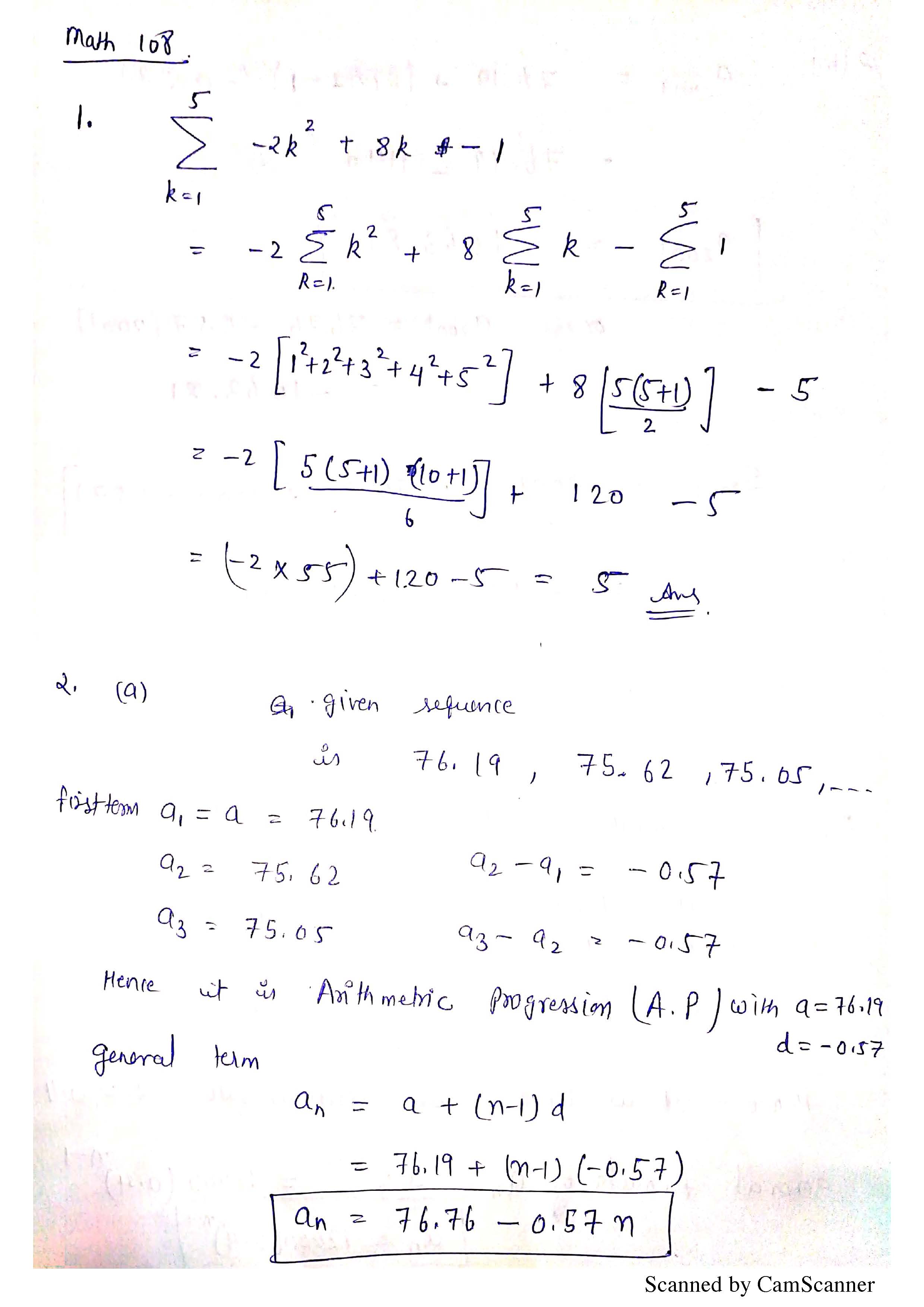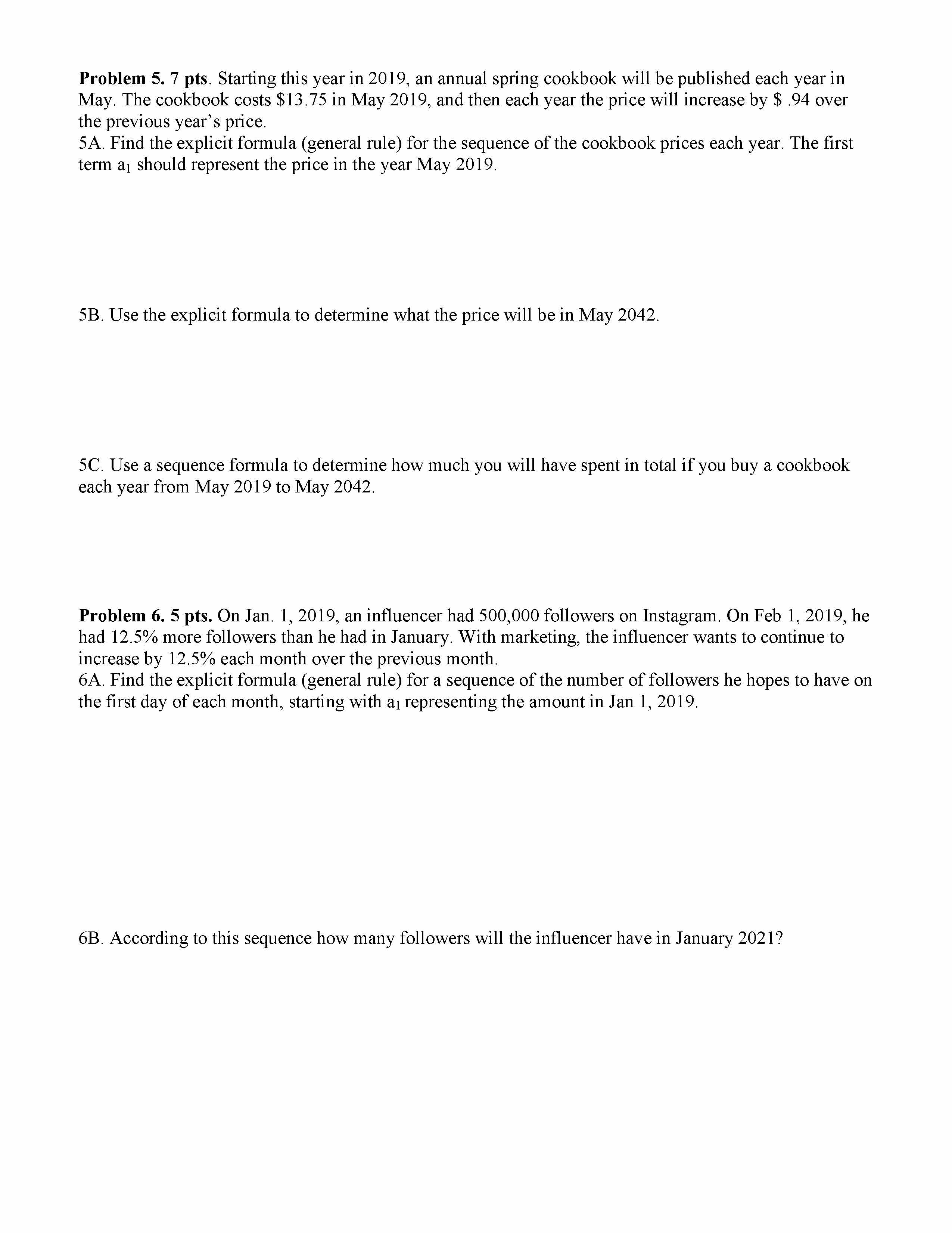 Problem 1. 2 pts. Evaluate the sum Problem 2. 6 pts. For the seque...