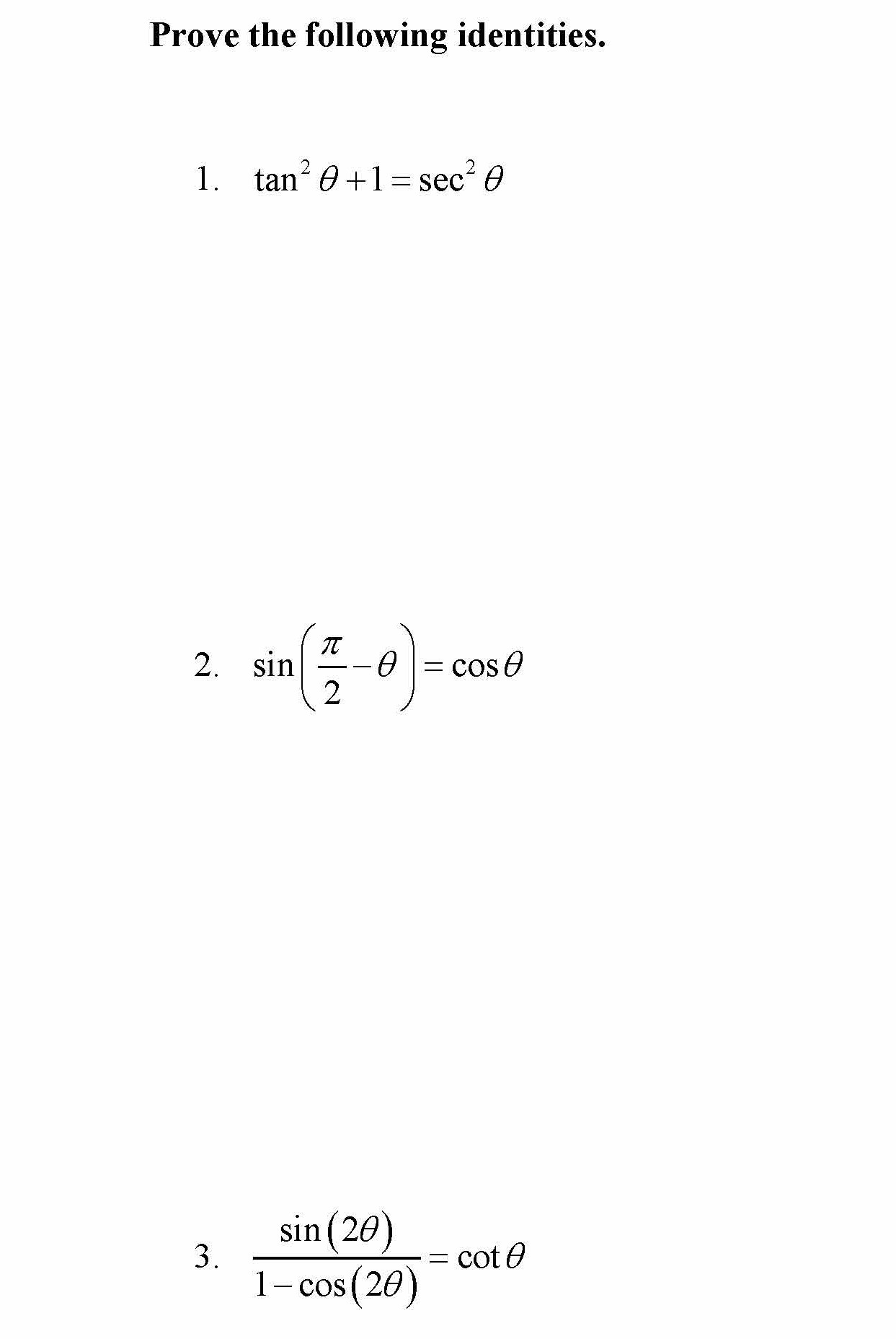 Prove the following identities. 1. 2 2 tan 1 sec θ θ + = 2. sin...