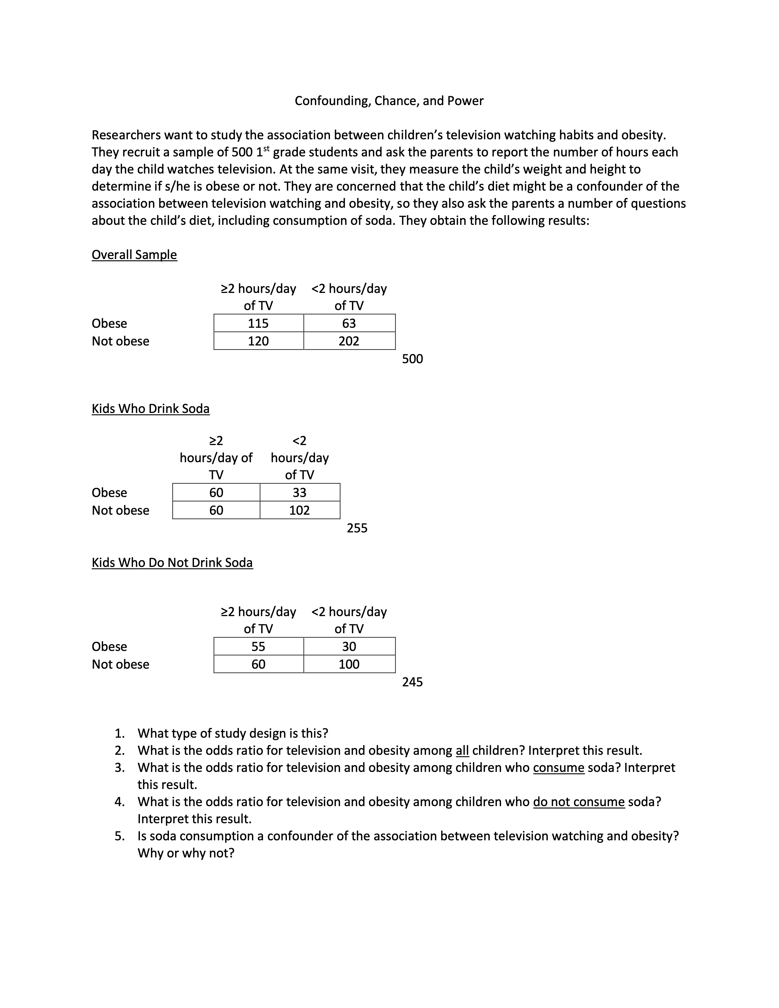 Confounding, Chance, and Power Researchers want to study the assoc...