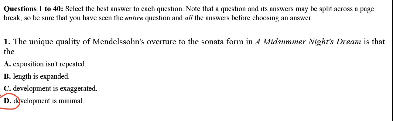 : 250465RR - Music Appreciation Questions 1 to 40: Select the best...
