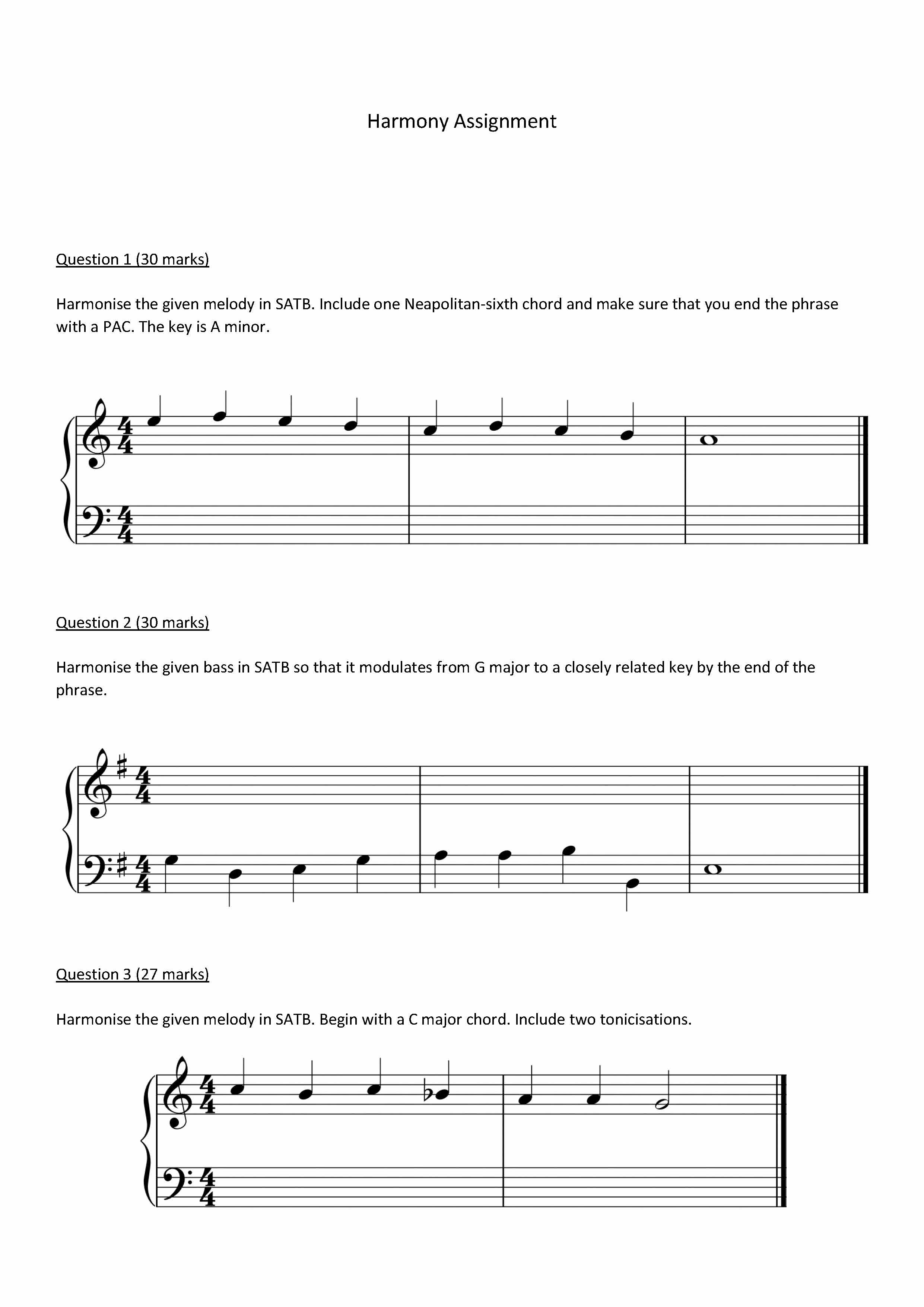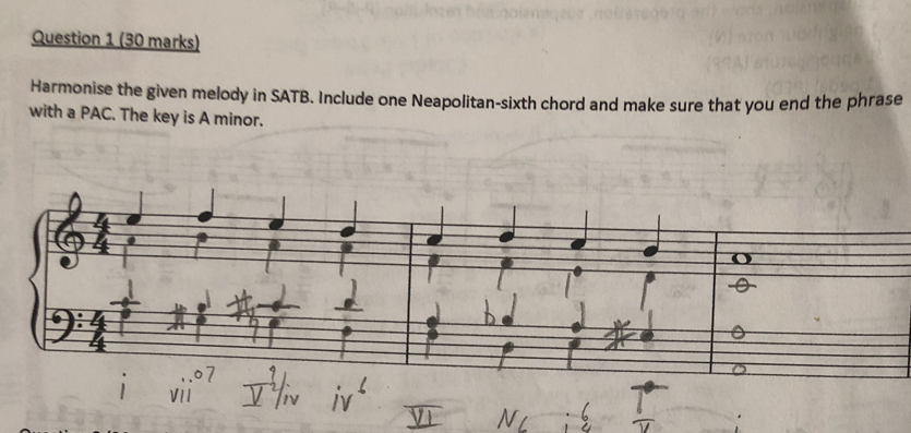 Harmony Assignment Question 1 (30 marks) Harmonise the given melo...