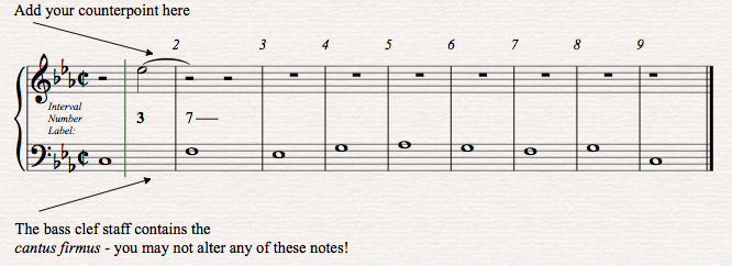 Add Second Species (2:1) counterpoint to the provided cantus firmus...