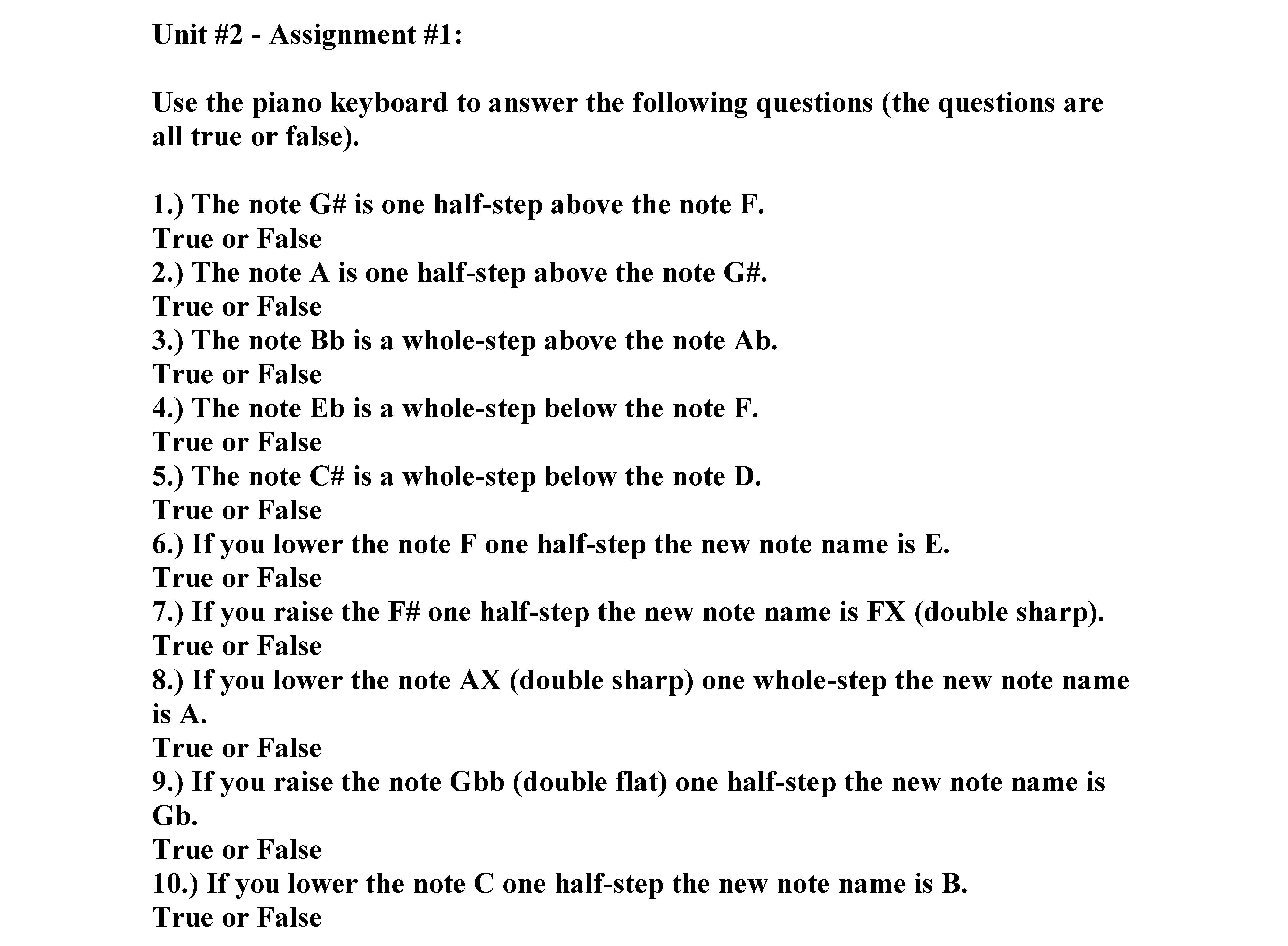 Unit #2 - Assignment #1: Use the piano keyboard to answer the foll...
