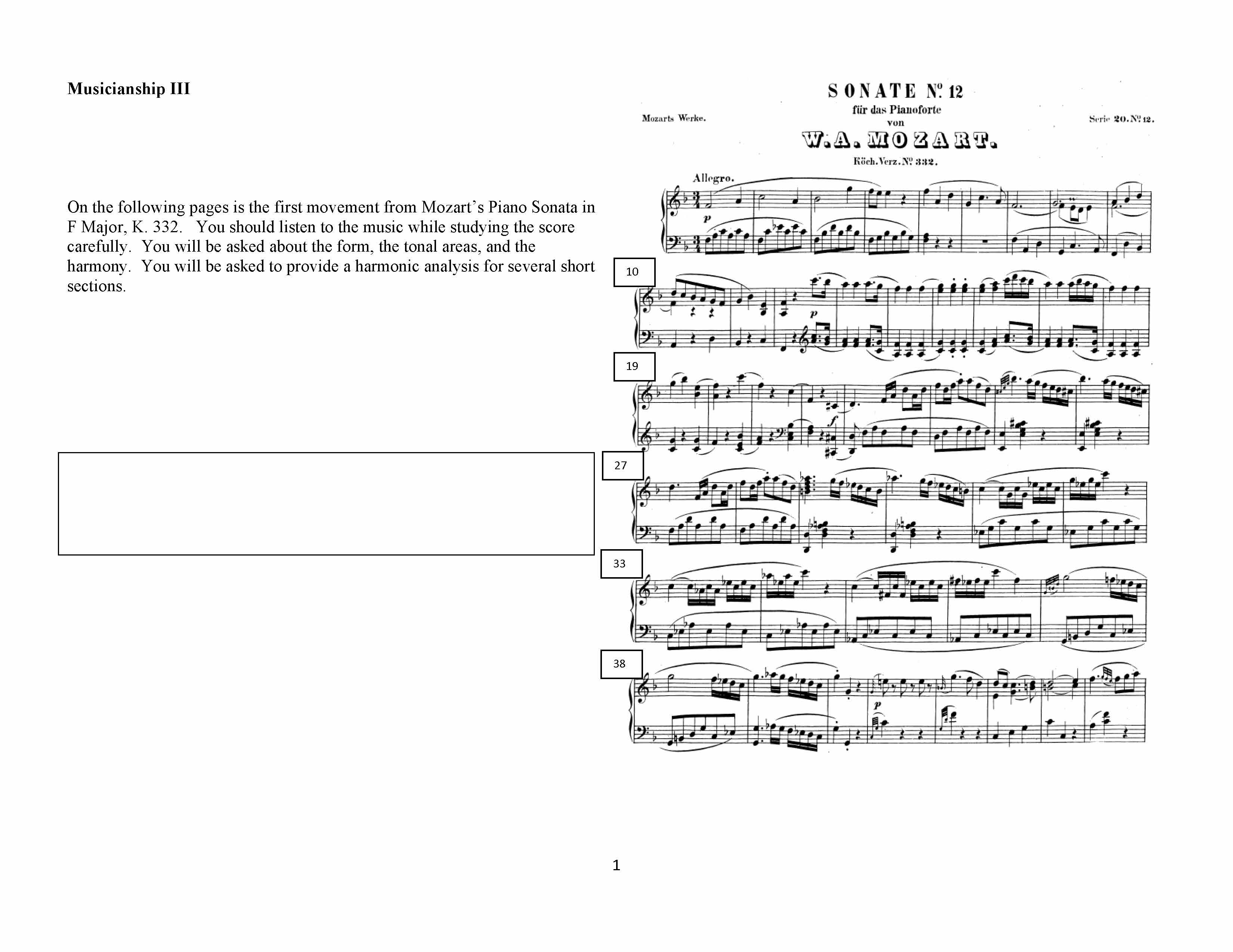 Musicianship III SONATE Planeforte Mearts Sui W Allegro. On ...