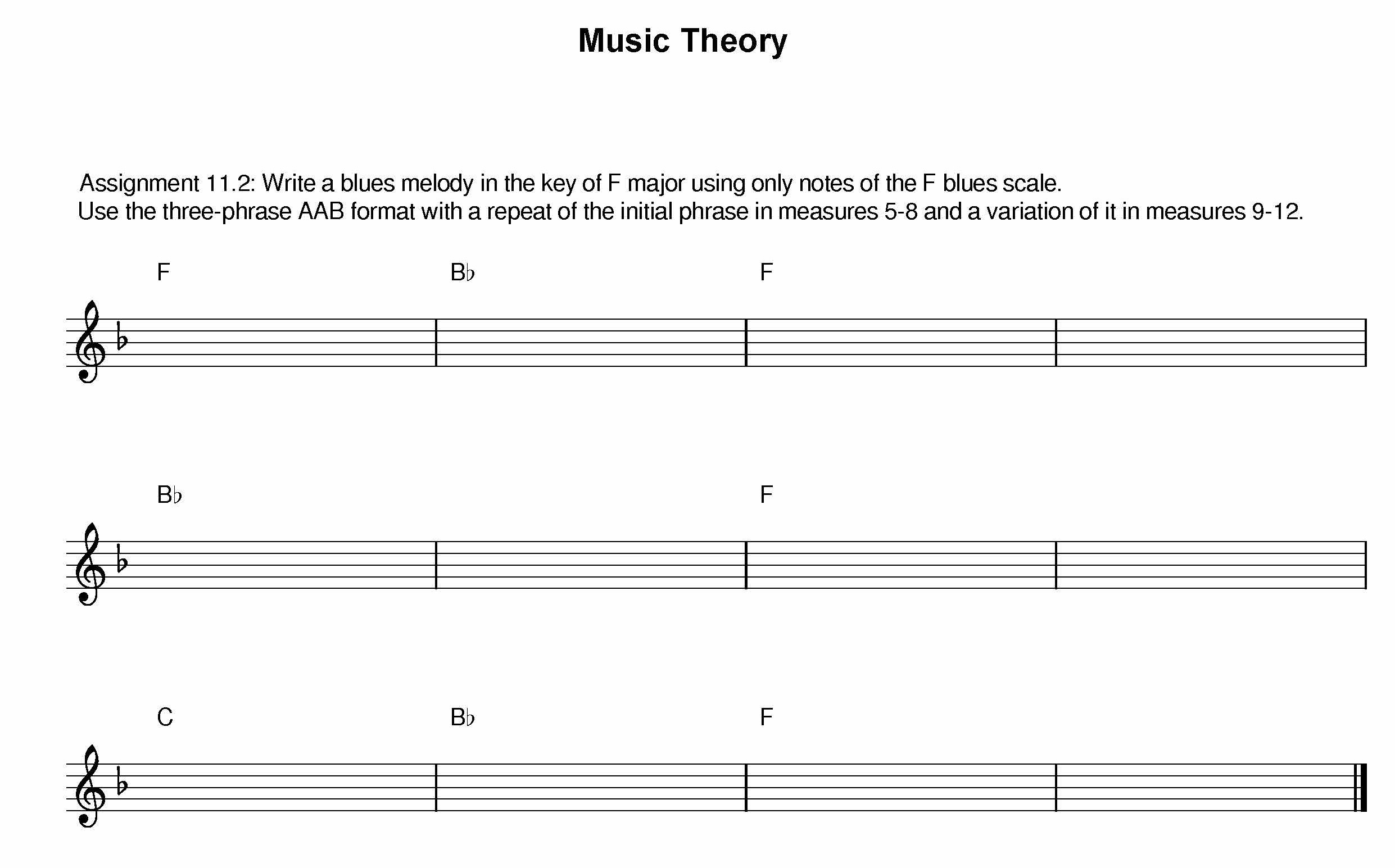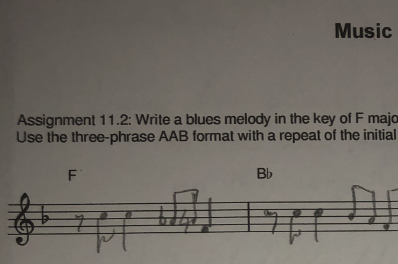 Write a blues melody in the key of F major using only notes of the ...