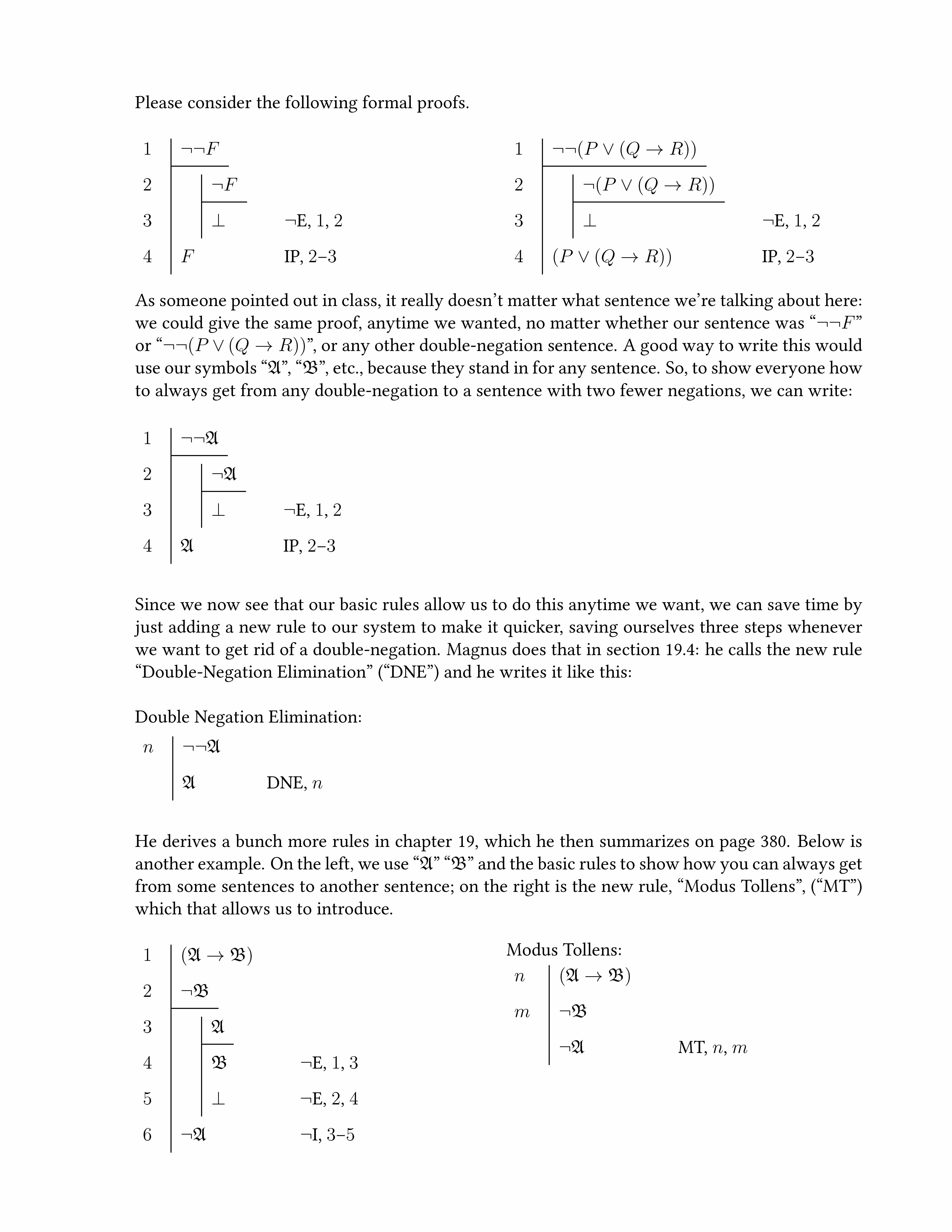 Please consider the following formal proofs. 1 ¬¬F 2 ¬F 3 ⊥...