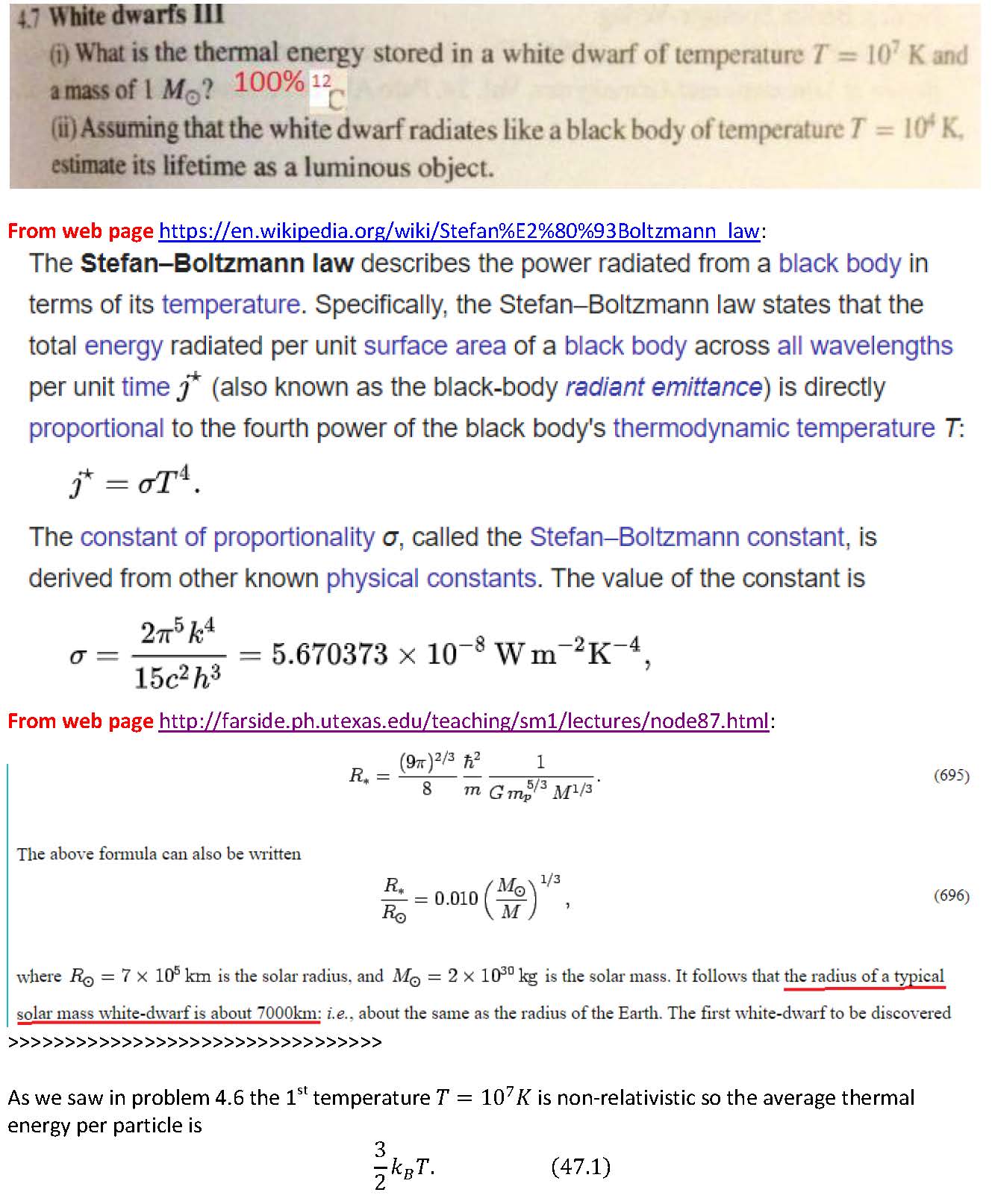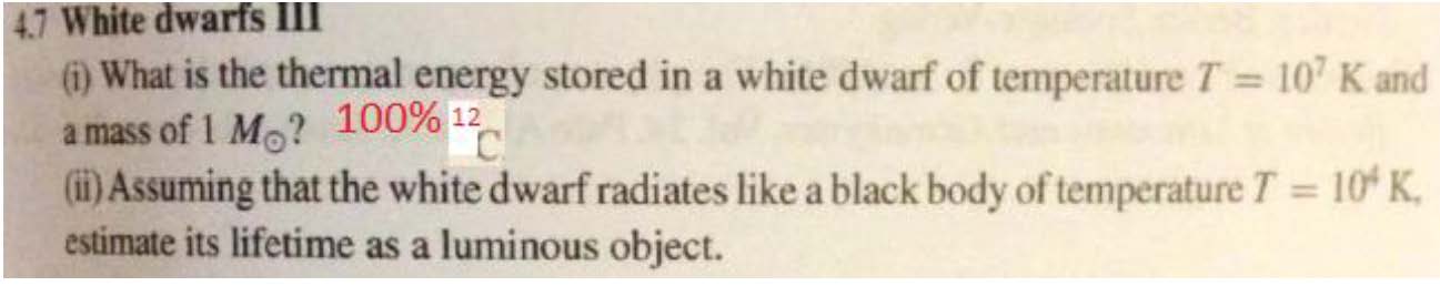 White dwarfs III (i) What is the thermal energy stored in a white ...