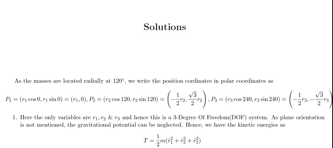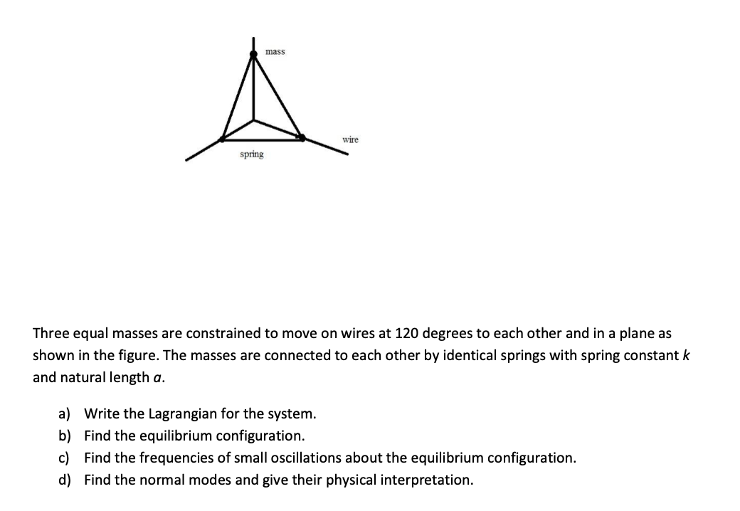 Three equal masses are constrained to move on wires at 120 degrees ...
