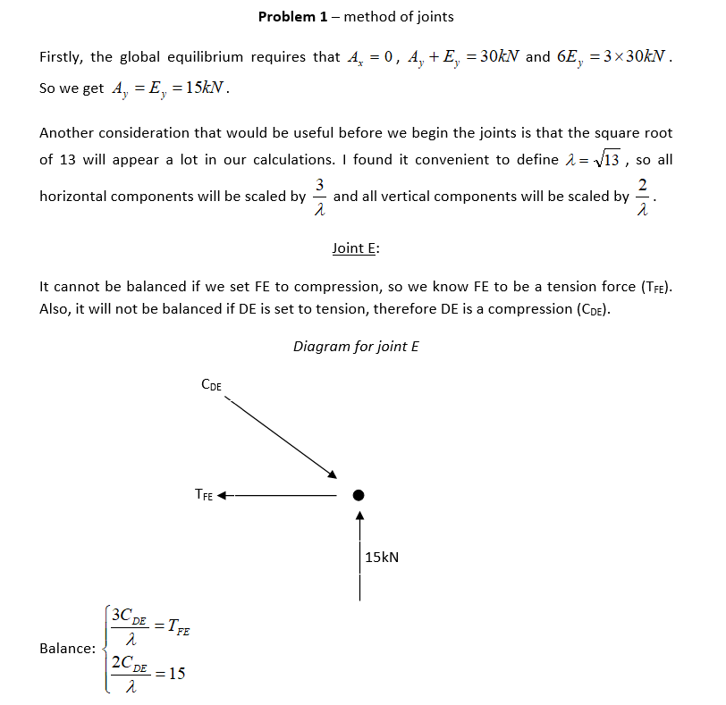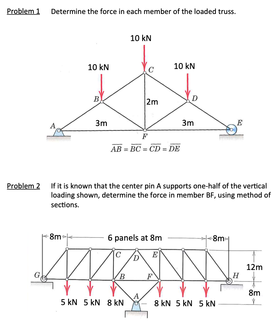 Problem 1 Determine the force in each member of the loaded truss. ...