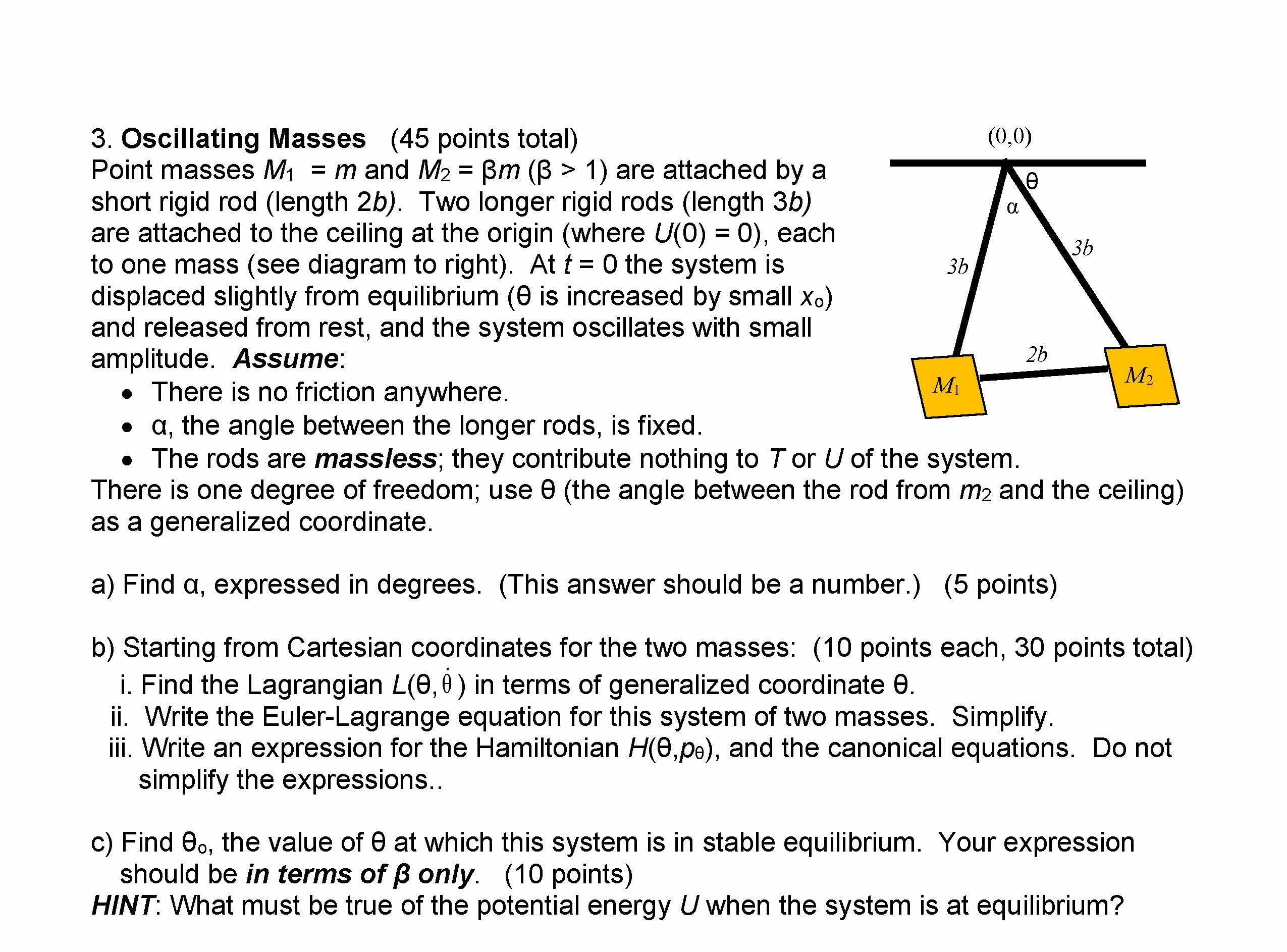 3. Oscillating Masses a) See Figure 1. ð‘ ð‘–ð‘...