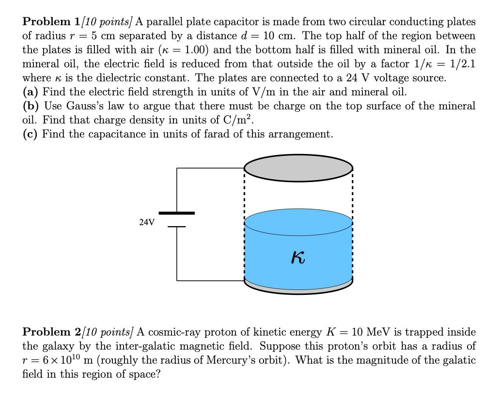 Problem 1[10 points] A parallel plate capacitor is made from two ci...