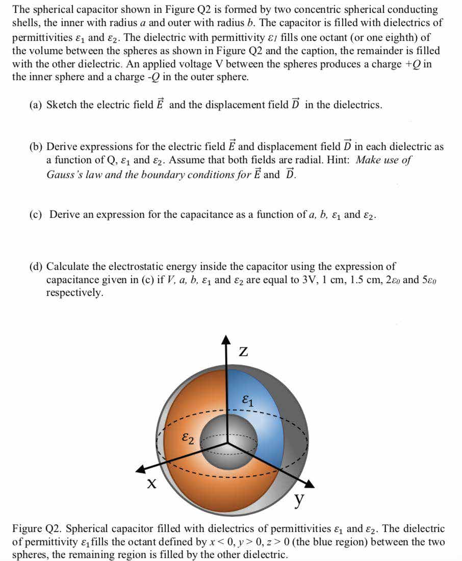 The spherical capacitor shown in Figure Q2 is formed by two concent...