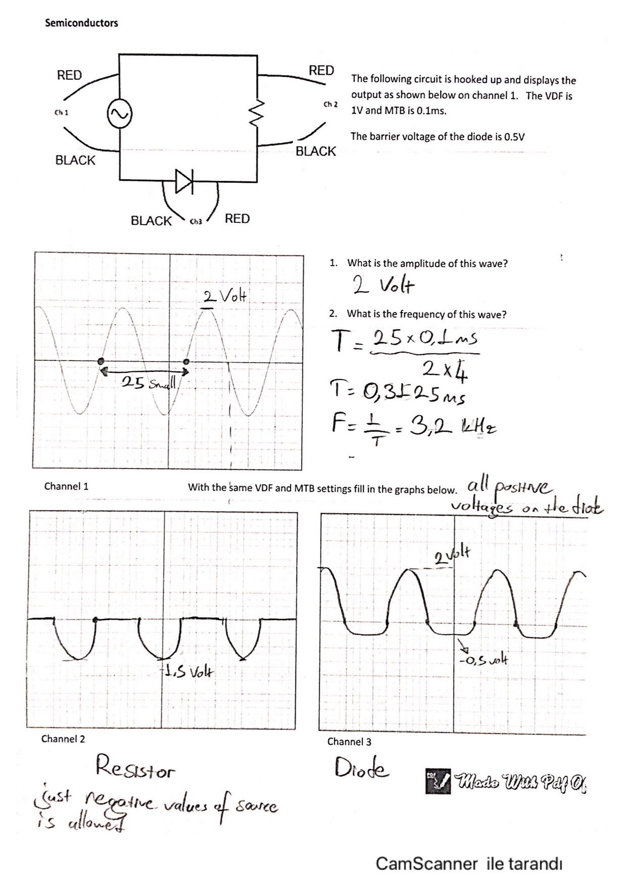 Semiconductors The following circuit is hooked up and displays the...