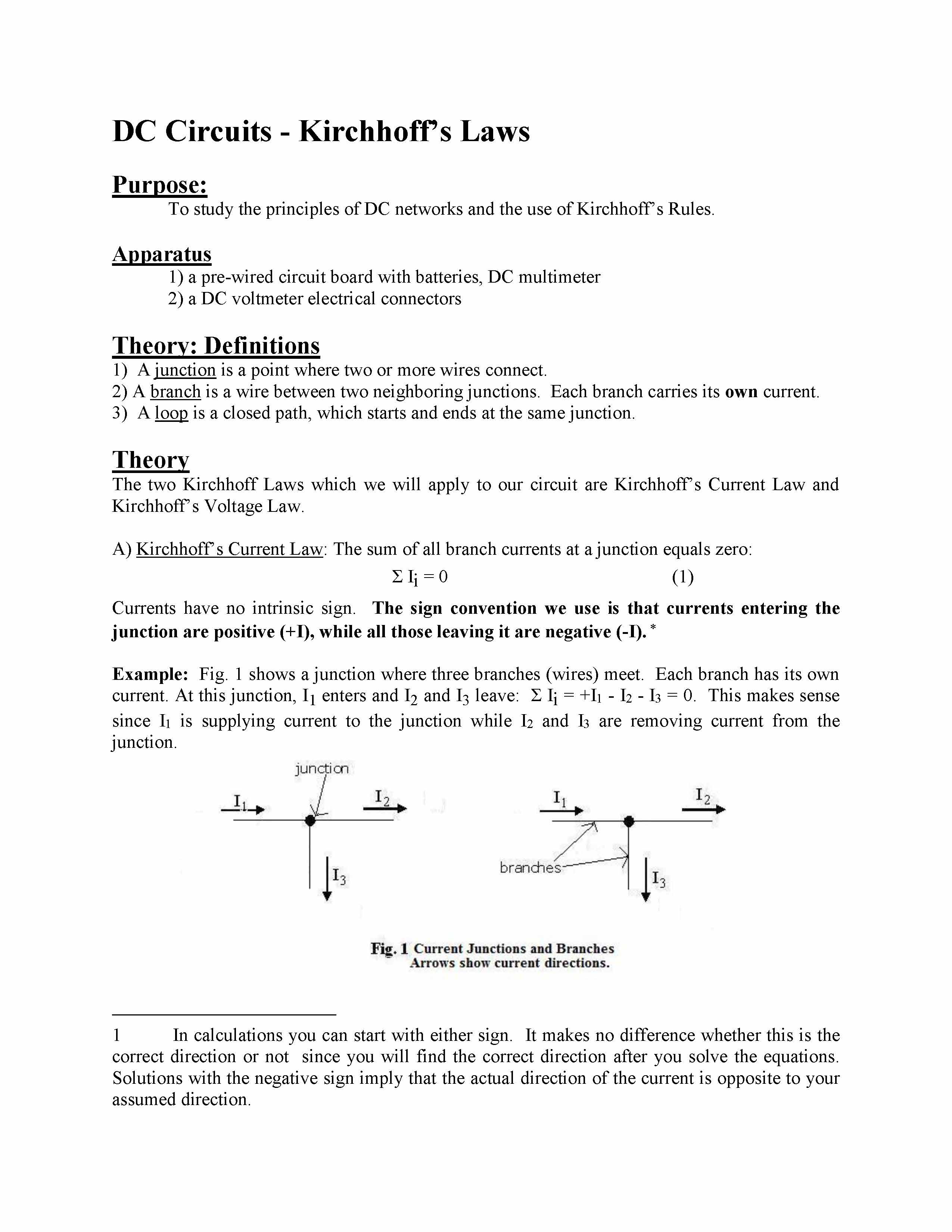 DC Circuits - Kirchhoff’s Laws Purpose: To study the principles...