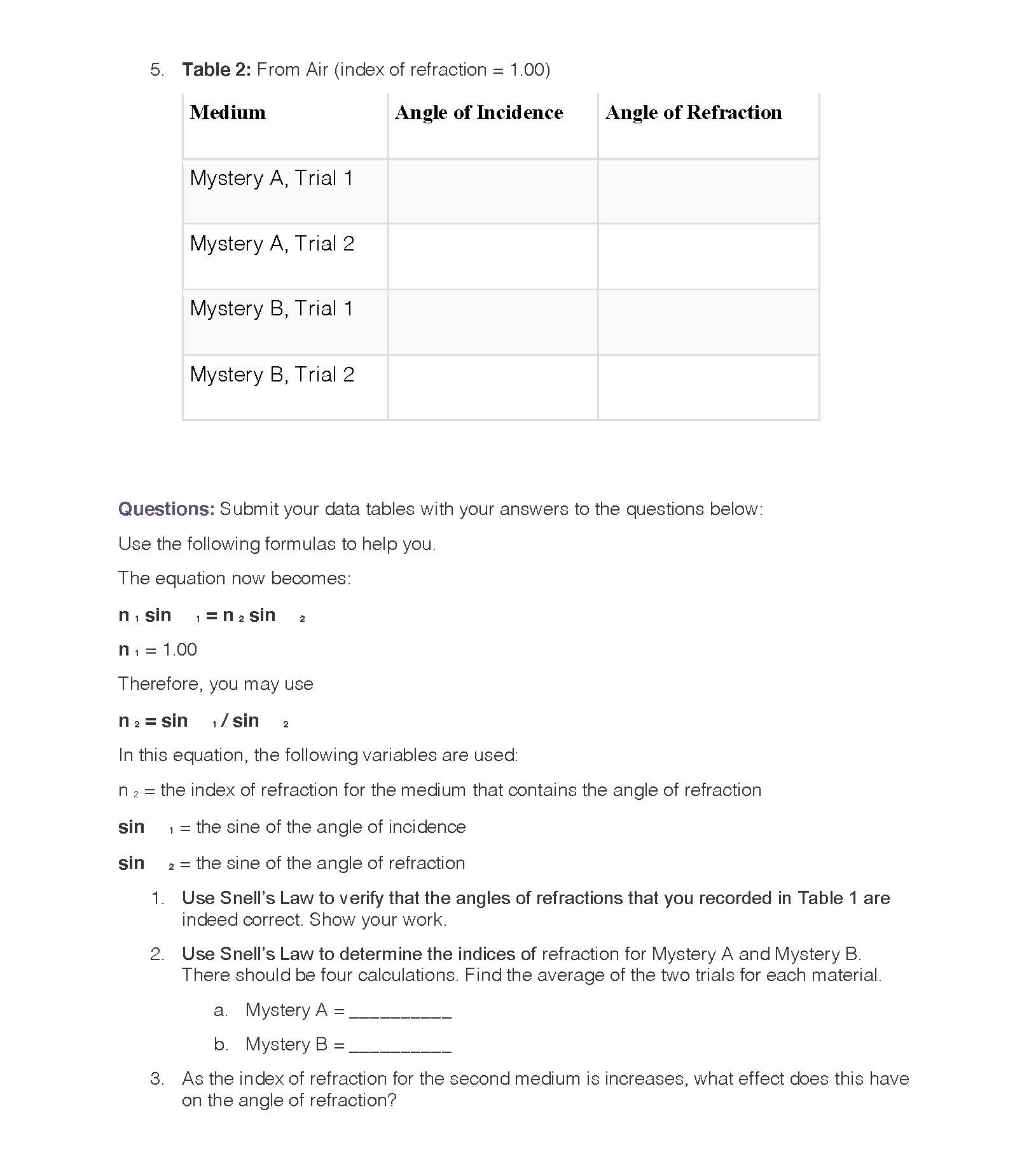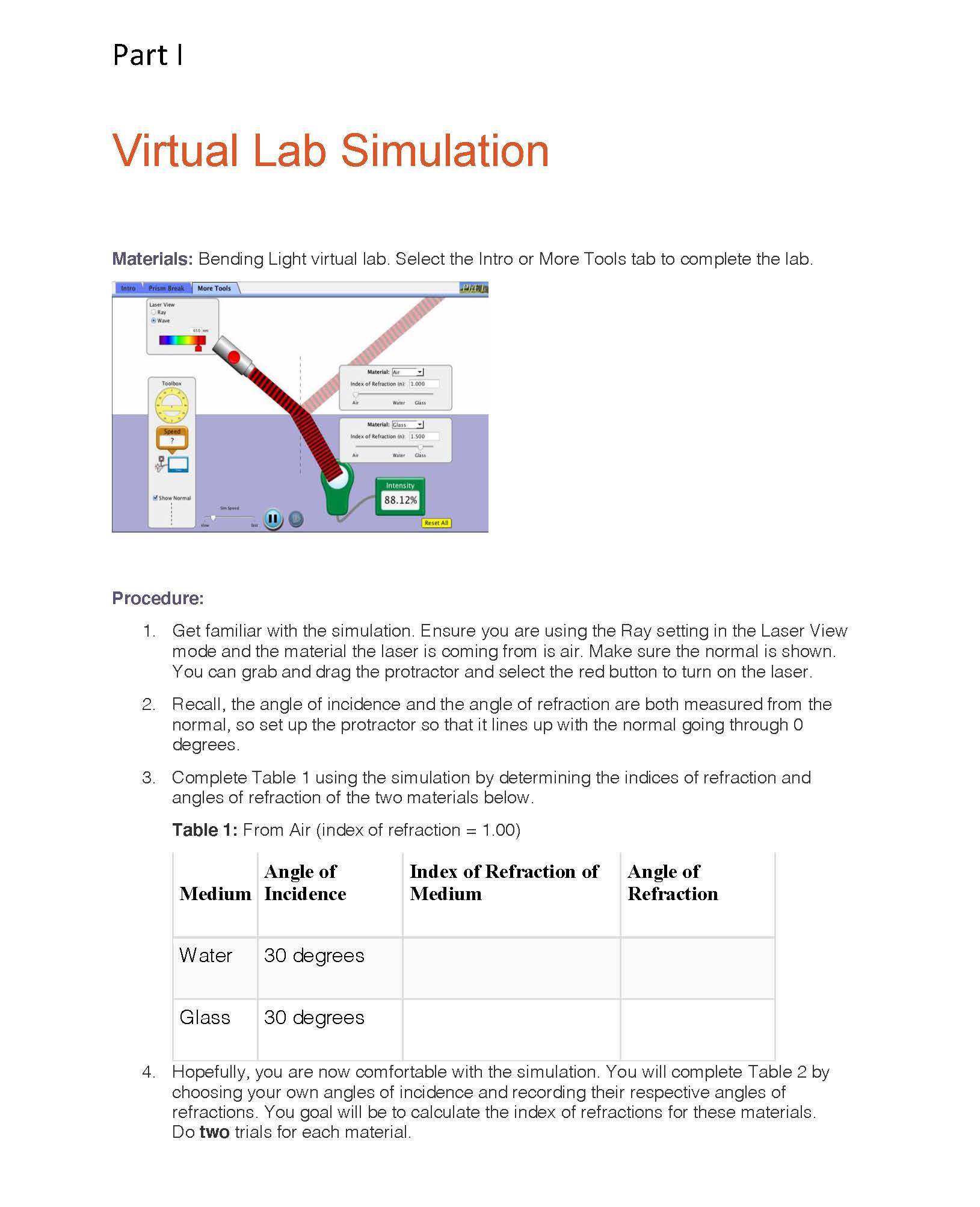 Part I Virtual Lab Simulation Materials: Bending Light virtual la...