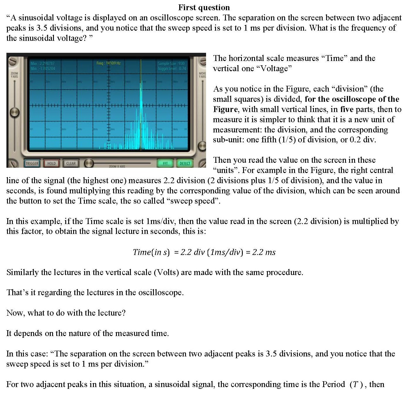 A sinusoidal voltage is displayed on an oscilloscope screen. The se...