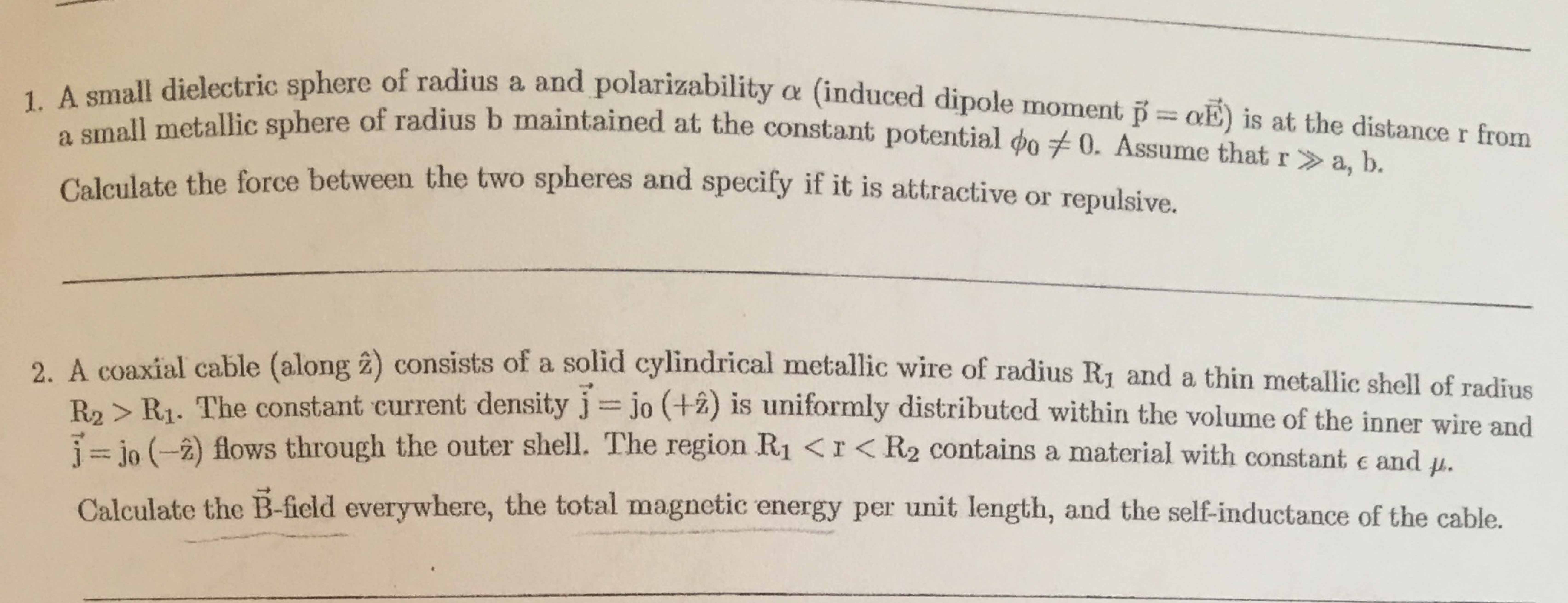 1. A small dielectric sphere of radius a and polarizability a (indu...