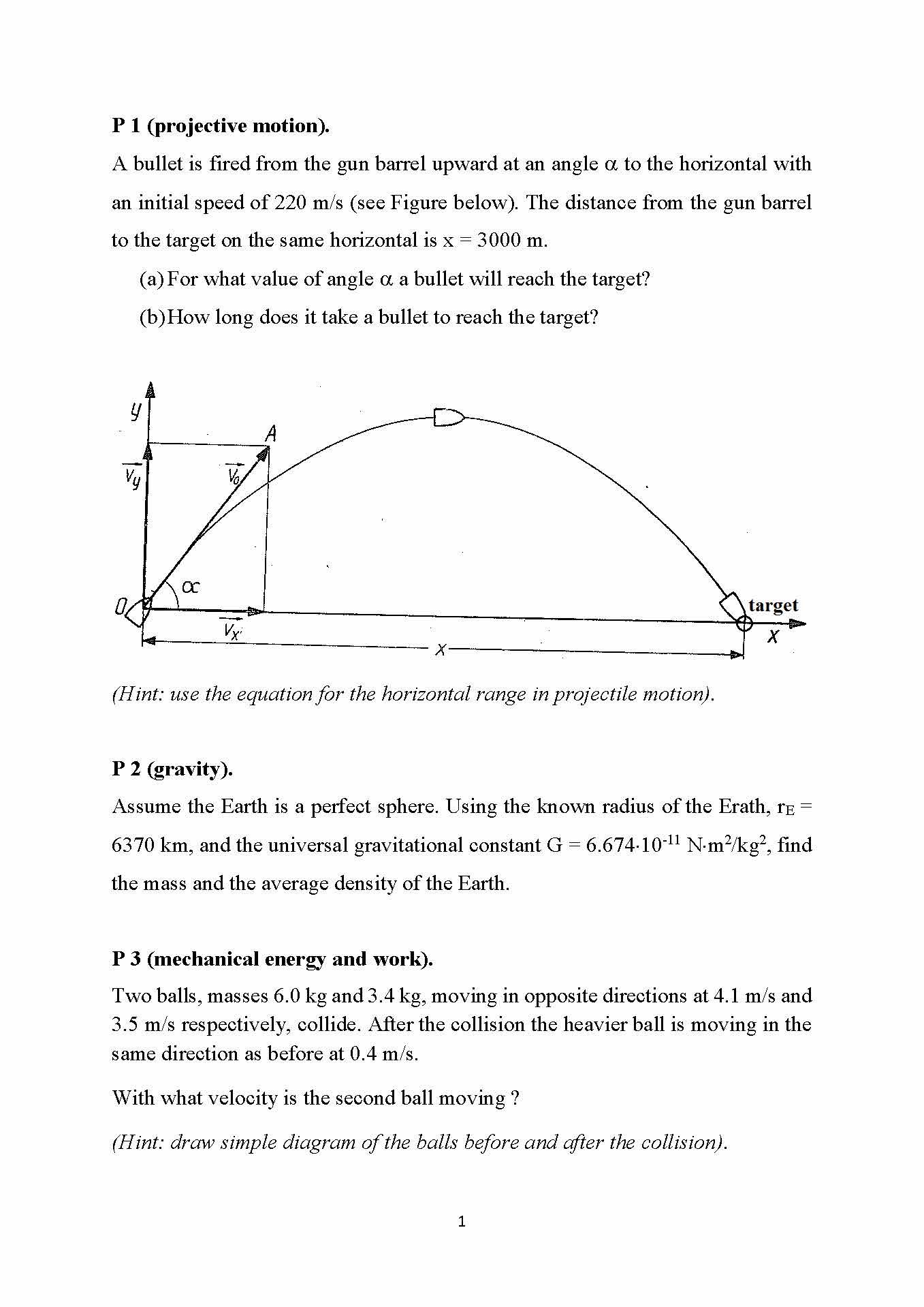 P 1 (projective motion). A bullet is fired from the gun barrel upw...