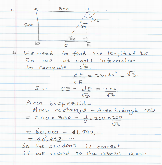 1. A student calculates the area of the lot abcd shown in picture 1...