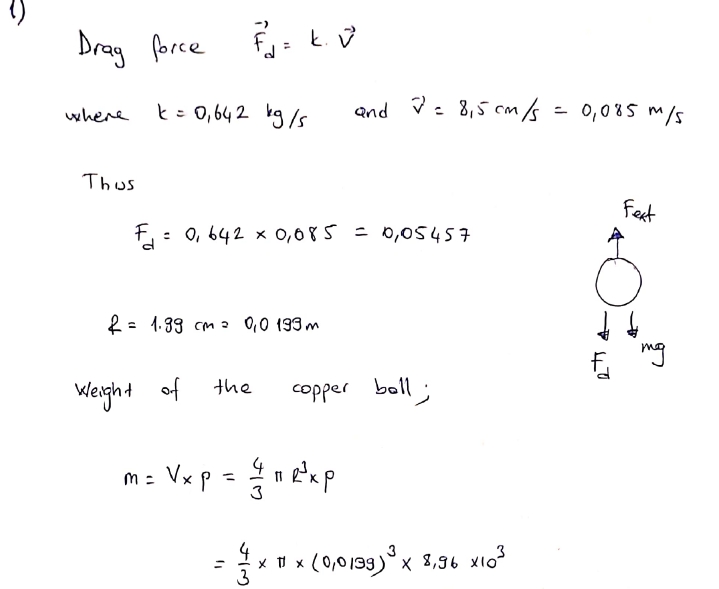 1)Calculate the force required to pull a copper ball of radius 1.99...