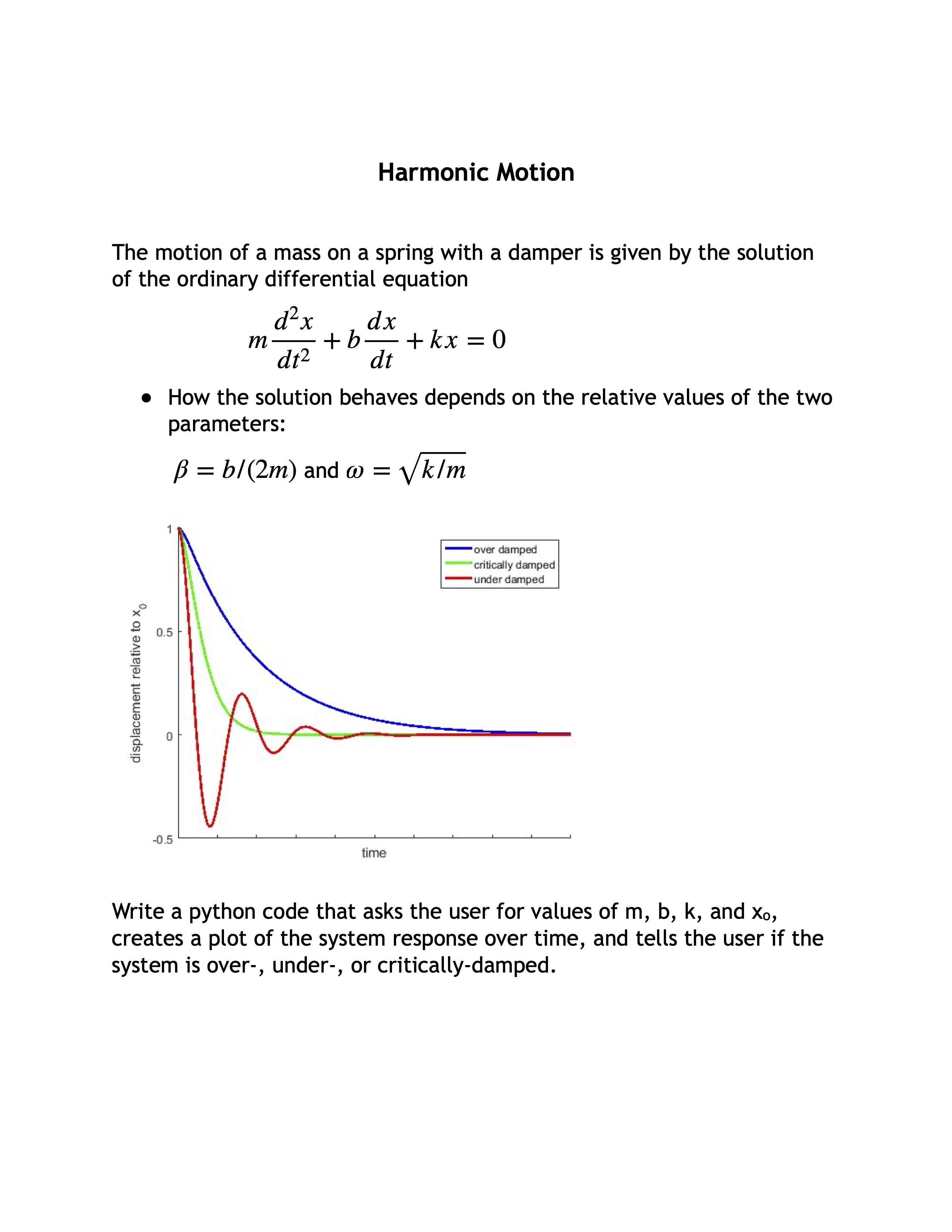 Harmonic Motion The motion of a mass on a spring with a damper is...