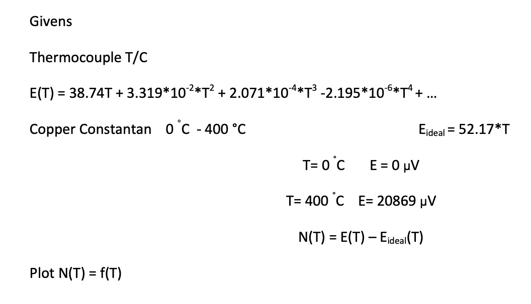 Givens Thermocouple T/C E(T) = 38.74T +3.319*102*T2+2.071*104*T'-...