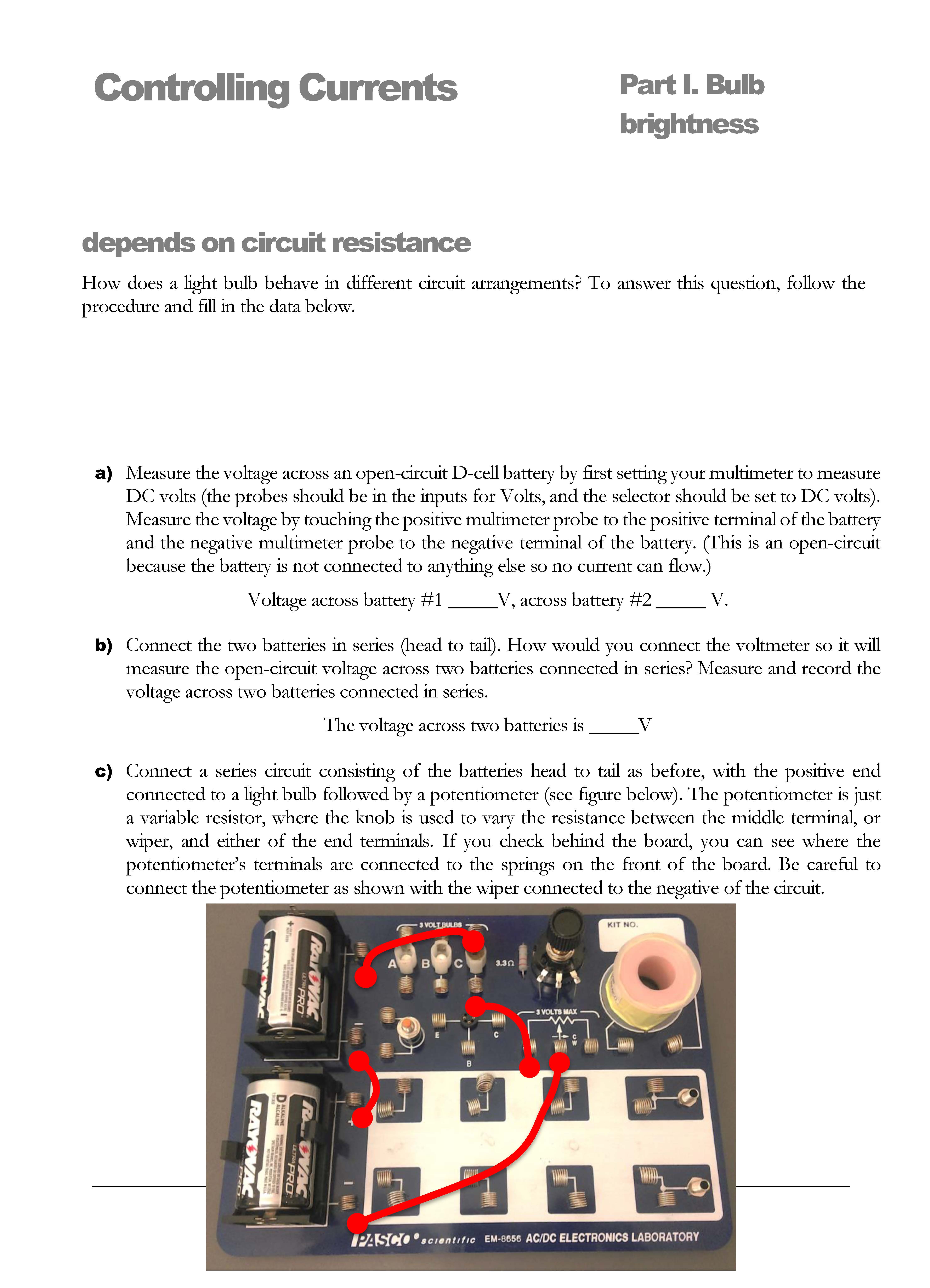 Part I. Bulb brightness depends on circuit resistance How does a...